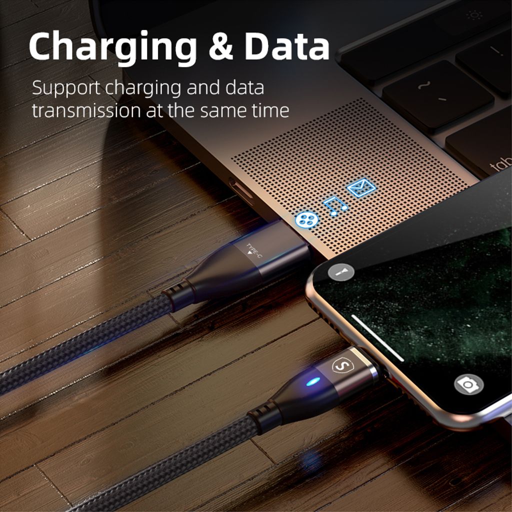 - 3-in-1 aansluiting: USB-C, Lightning en Micro-USB<br />