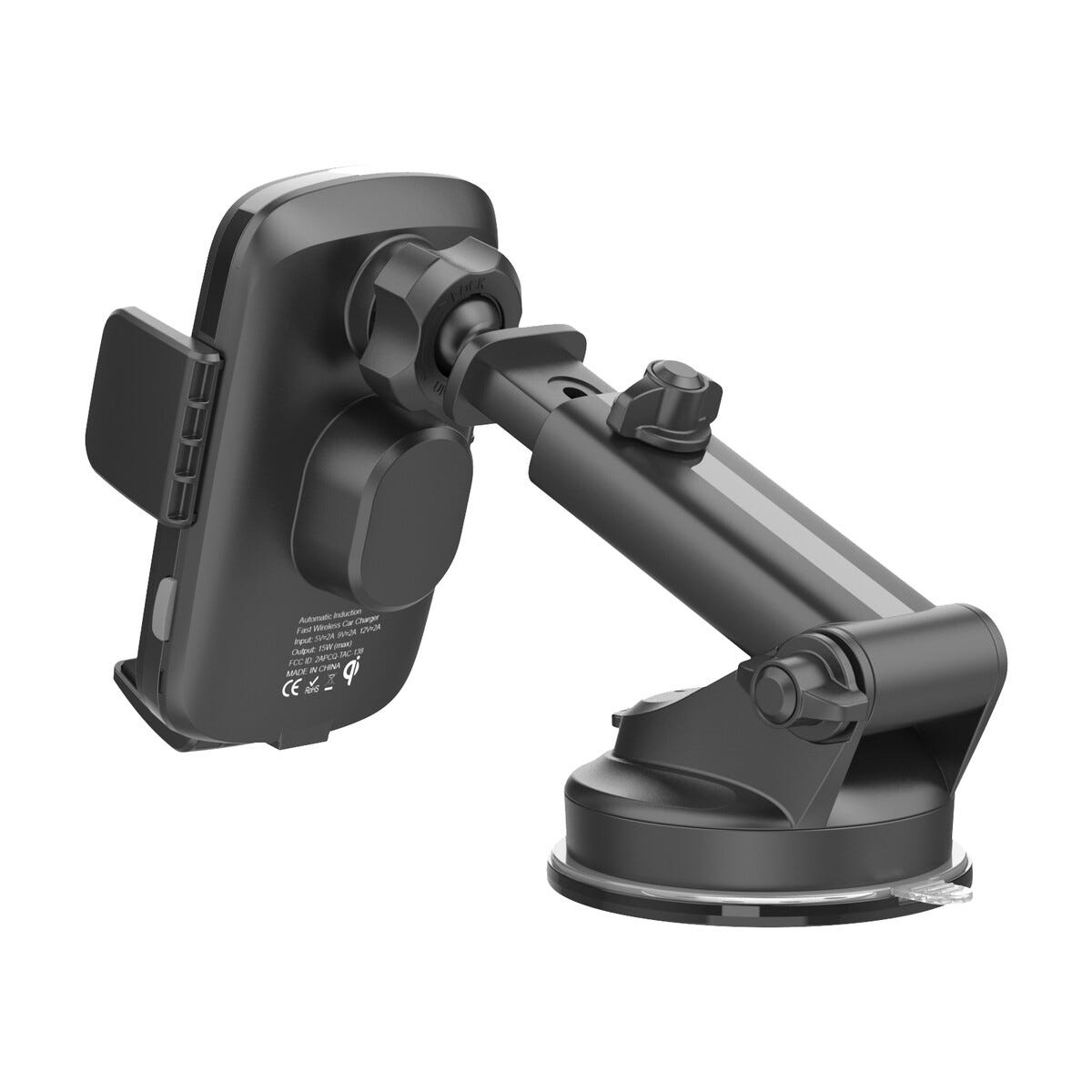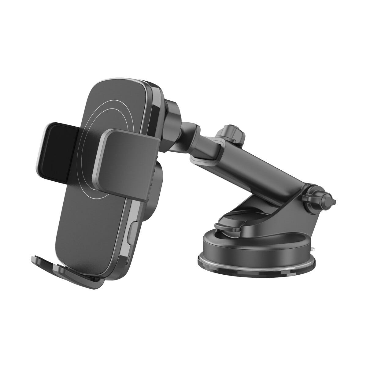 Praktische autohouder met ingebouwde draadloze Qi-oplaadfunctie waarmee je je telefoon tijdens het rijden zichtbaar, veilig en opgeladen houdt. De houder kan flexibel op het dashboard of de voorruit worden gemonteerd met een stevige zuignap die zonder gereedschap te bevestigen is. Ideaal voor navigatie, muziek luisteren of handsfree bellen terwijl de smartphone draadloos wordt opgeladen. De telescopische arm biedt extra bereik en maakt het eenvoudig om de kijkhoek aan te passen voor optimaal zicht. De verstelbare constructie zorgt voor stabiele ondersteuning van verschillende telefoongroott... Meer