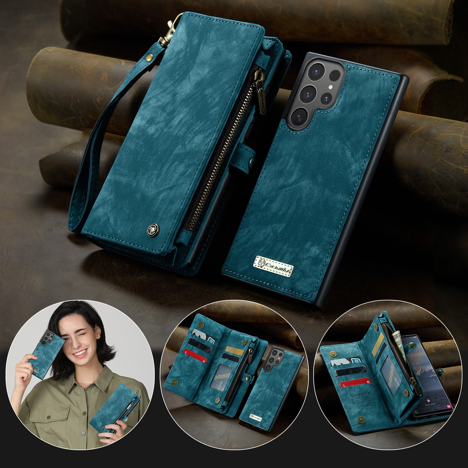 Telefoonhoesje met magnetische case en portemonnee met extra veel kaartsleuven voor Samsung Galaxy S26 Ultra van CaseMe. De ruime portemonnee heeft een vak voor bankbiljetten, een muntvak met ritssluiting en meerdere kaartsleuven.