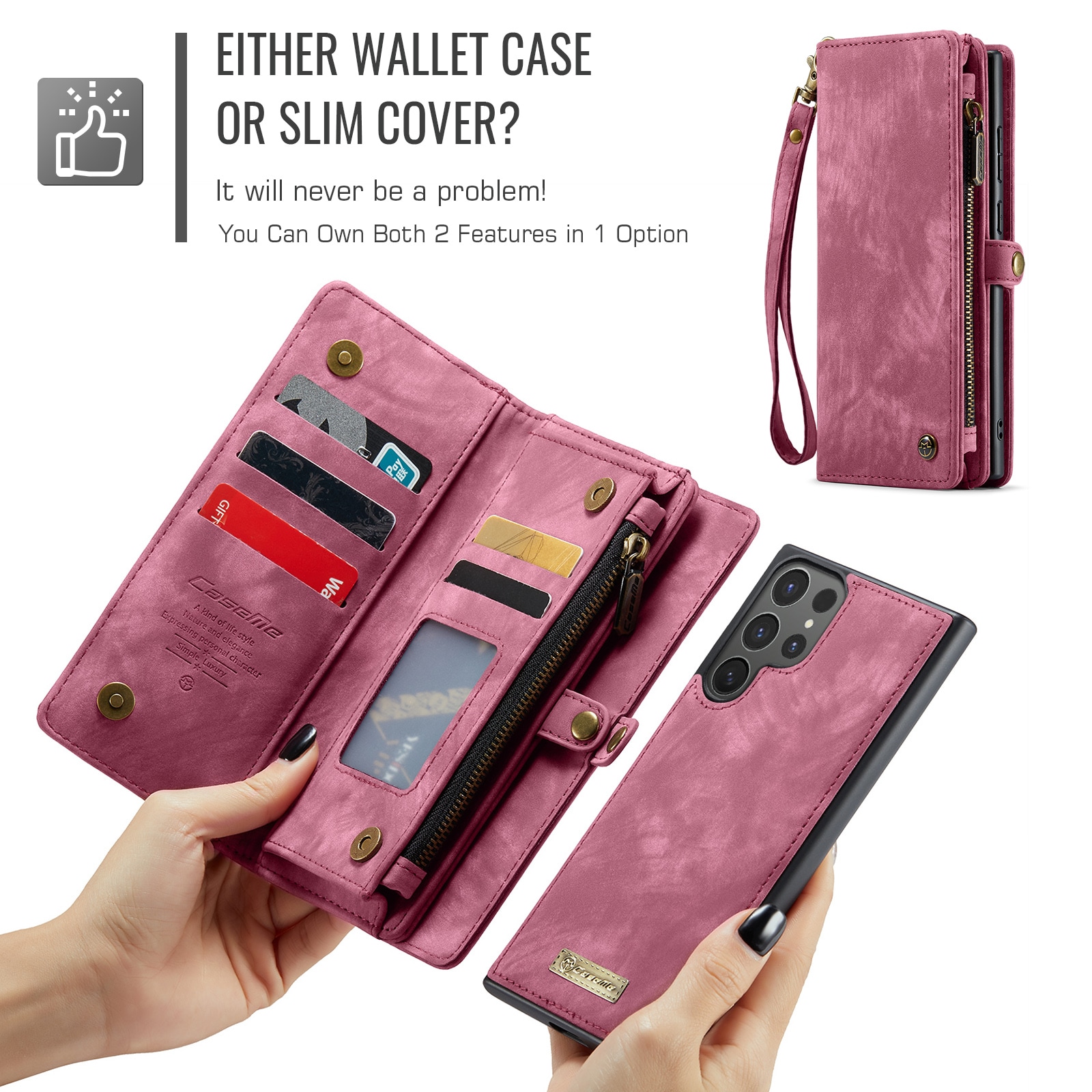 Telefoonhoesje met magnetische case en portemonnee met extra veel kaartsleuven voor Samsung Galaxy S26 Ultra van CaseMe. De ruime portemonnee heeft een vak voor bankbiljetten, een muntvak met ritssluiting en meerdere kaartsleuven.