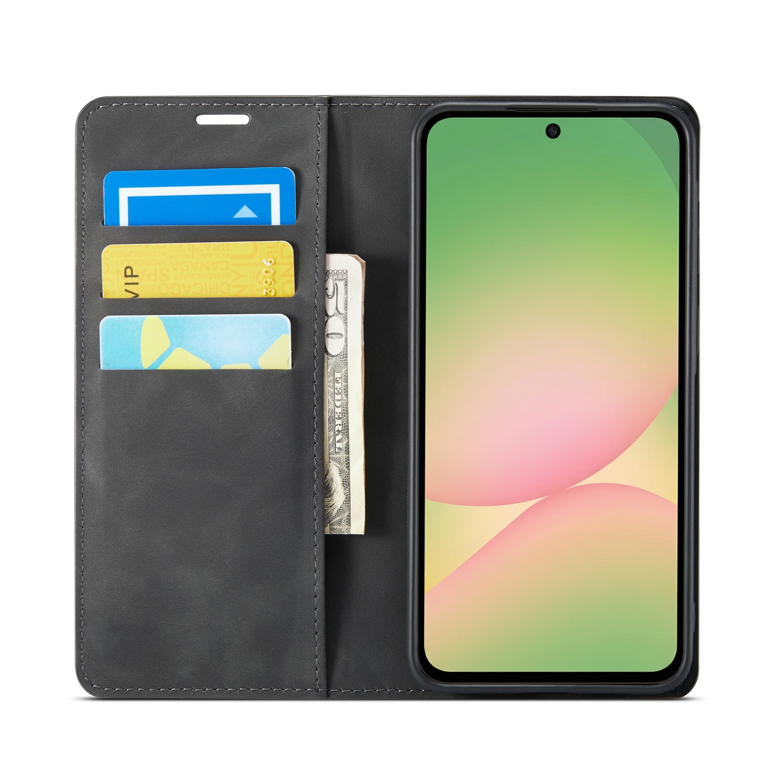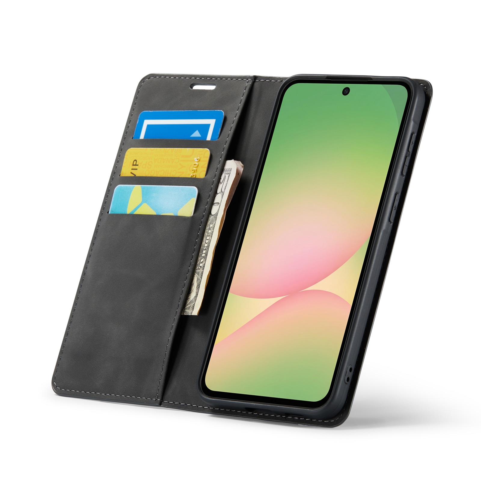 Smartphonehoesje voor Samsung Galaxy A57.Het hoesje heeft een zijdezachte buitenkant, gemaakt van duurzaam kunstleer, en een ingebouwde case van schokabsorberend TPU. De flap biedt uitstekende bescherming tegen krassen op het scherm, terwijl de ingebouwde case de telefoon beschermt tegen stoten en vallen.