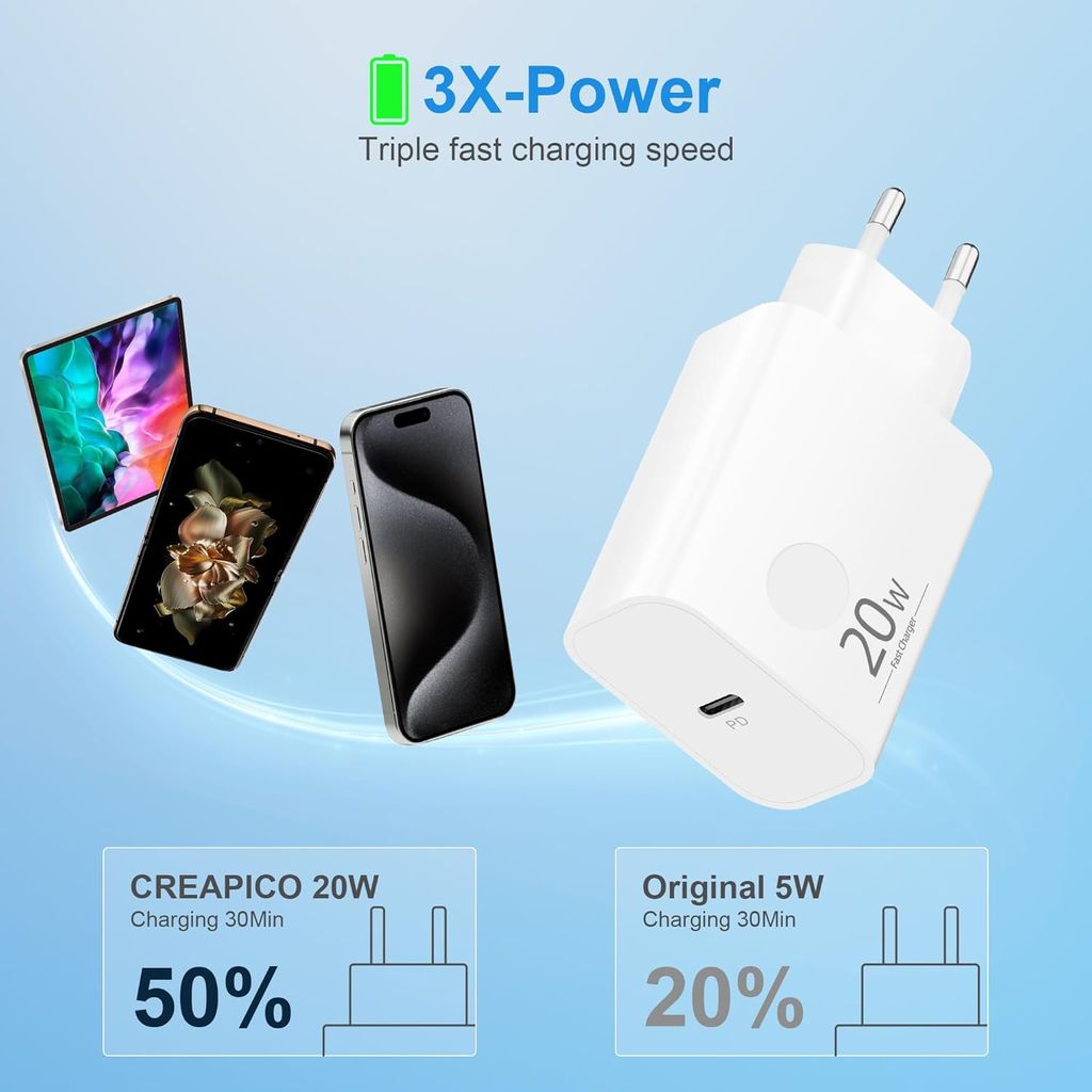 <p>Met een uitgangsvermogen tot 20W kunt u compatibele apparaten snel en veilig opladen. De intelligente laadtechnologie beschermt tegen overladen, oververhitting en overspanning, wat zorgt voor veilig gebruik. Het compacte en lichte ontwerp maakt de lader ideaal voor thuis, op kantoor of onderweg.</p>