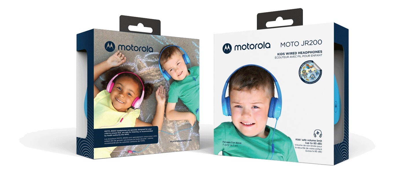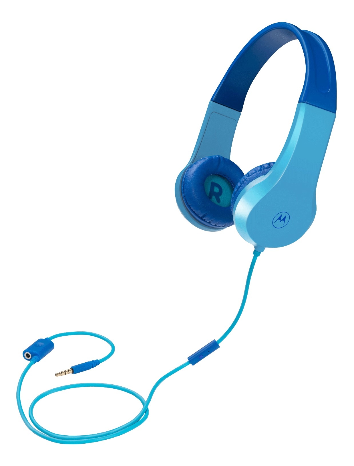 On-ear hoofdtelefoon voor kinderen van Motorola met een geluidsbeperking van 85 decibel. De hoofdtelefoons zijn in grootte verstelbaar, wat betekent dat ze blijven passen als het kind groeit. De koptelefoon kan eenvoudig worden aangesloten op een smartphone of tablet met behulp van de meegeleverde 1 meter lange 3,5mm kabel. De koptelefoon heeft een ingebouwde microfoon aan het snoer.