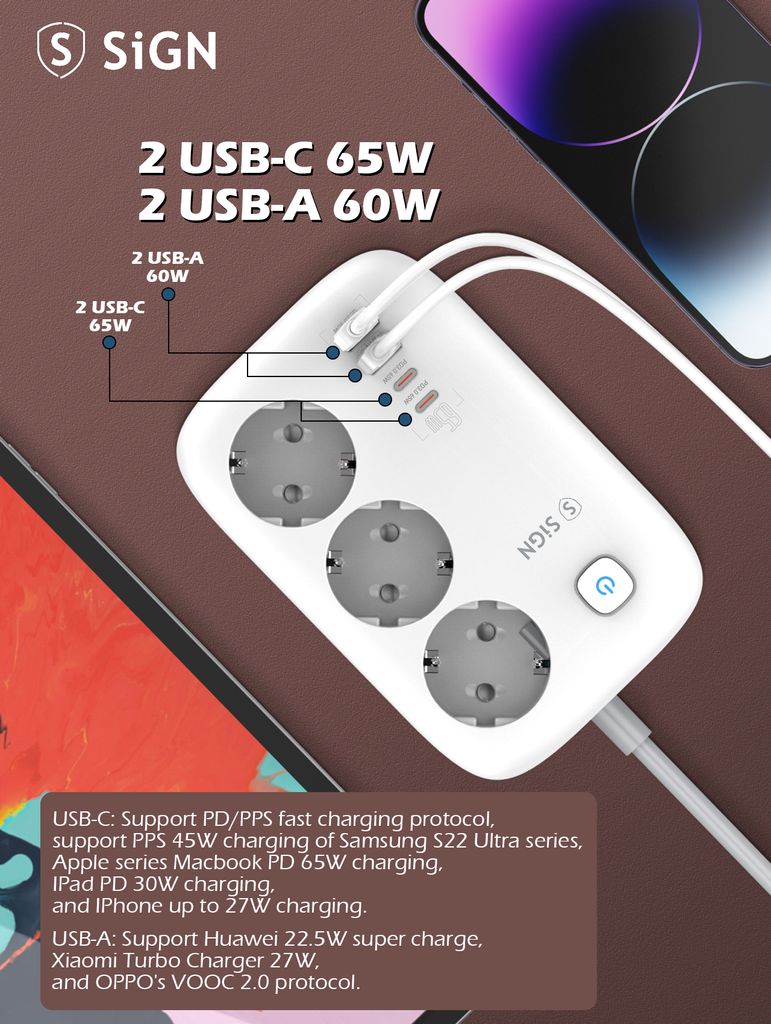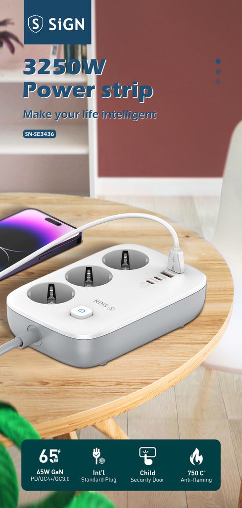 621423-voudige stekkerdoos GaN 65W met 2 x USB-C + 2 x USB-A 2 m Withttps://www.phonelife.nl/opladers-en-kabels/accessoires-voor-opladers-kabels/3-voudige-stekkerdoos-gan-65w-met-2-x-usb-c-2-x-usb-a-2-m-wit?channelCountry=NLhttps://www.phonelife.nl/pub_images/original/0_-_-_5_-_-_SE3436_E6_BF_80_E5_85_89_E6_95_88_E6_9E_9C_E5_9B_BE_20_283_29_281_29_xNWYzAuoEbv1xko3G4pCe.jpgInStock30.95EUR/opladers-en-kabels/accessoires-voor-opladers-kabelsSiGN<p>Krachtige en compacte GaN-stekkerdoos van SiGN die snel opladen combineert met een slim ontwerp voor thuis, op kantoor of onderweg. Met drie stopcontacten en daarnaast twee USB-A- en twee USB-C-poorten kun je meerdere apparaten tegelijk eenvoudig en efficiënt opladen. De GaN-technologie zorgt voor hoge prestaties met minder warmteontwikkeling en biedt stabiel en veilig opladen, zelfs bij hogere belasting. Een totale laadcapaciteit tot 65 W maakt deze stekkerdoos ideaal voor laptops, tablets, smartphones en andere elektronische apparaten. De praktische kabellengte van 2 meter geeft flexibiliteit bij het plaatsen en helpt om een nette en moderne laadplek te creëren in het dagelijks gebruik. Een stijlvolle en ruimtebesparende oplossing die voldoet aan de moderne behoefte aan snel en veilig opladen.</p>