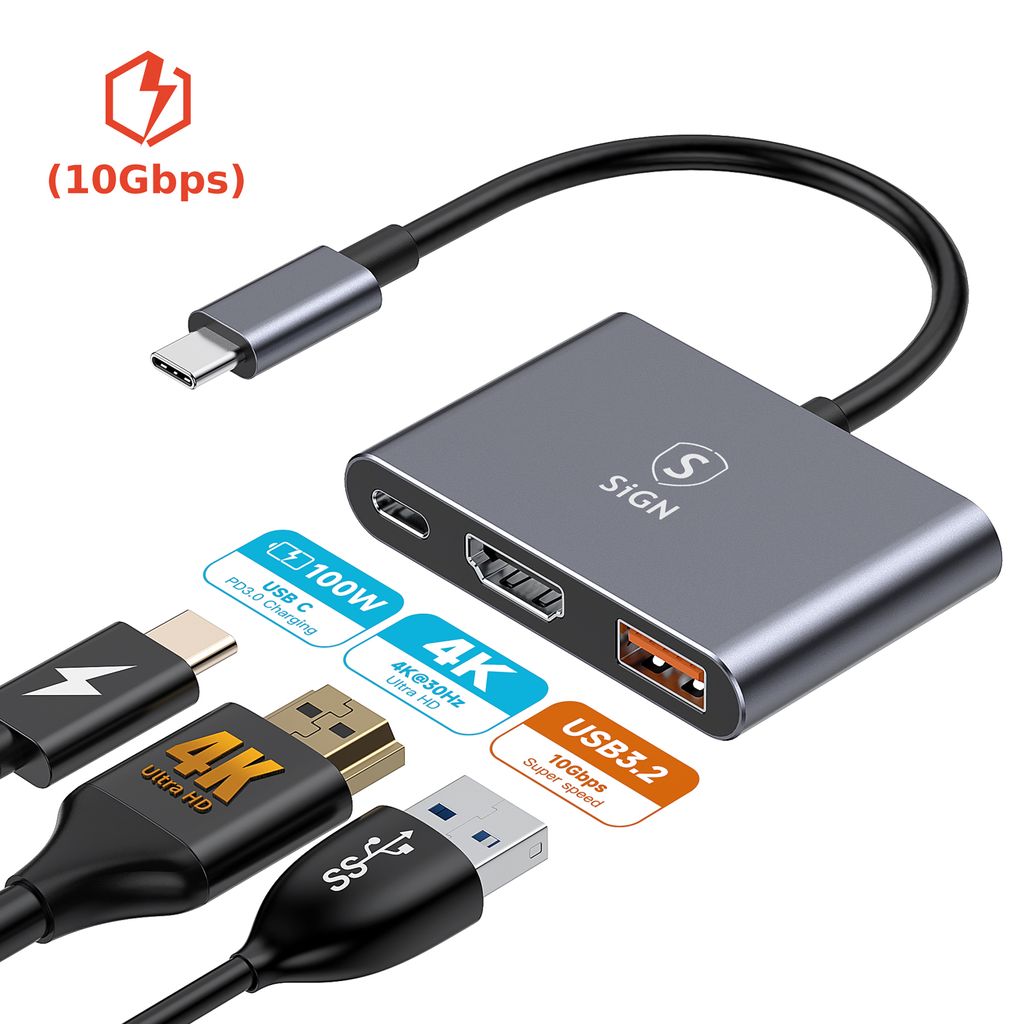 623083-in-1 Hub USB-C naar USB-C + USB-A + HDMI 4K 100Whttps://www.phonelife.nl/opladers-en-kabels/beeld/adapters/3-in-1-hub-usb-c-naar-usb-c-usb-a-hdmi-4k-100w?channelCountry=NLhttps://www.phonelife.nl/pub_images/original/0_-_-_5_-_-_HYD-9991T_20_283_29_20-_20Copy_N5dnn_CghkRmY5cXe6m2s.jpgInStock18.95EUR/opladers-en-kabels/beeld/adaptersSiGN<p>De SiGN USB-C hub is een compacte en praktische adapter die de aansluitmogelijkheden van je laptop of ander apparaat met USB-C-port uitbreidt. Dankzij meerdere poorten kun je eenvoudig een scherm, accessoires en opladen tegelijk aansluiten via dezelfde hub. De HDMI-poort ondersteunt een resolutie tot 4K bij 30 Hz en zorgt voor een helder beeld tijdens werk, presentaties of entertainment. De USB-A-poort maakt snelle gegevensoverdracht tot 10 Gbps mogelijk waardoor bestanden eenvoudig tussen apparaten kunnen worden verplaatst. De hub beschikt ook over een USB-C-poort met ondersteuning voor Power Delivery tot 100W zodat je je laptop kunt opladen terwijl andere aansluitingen worden gebruikt. Gemaakt van duurzame materialen voor langdurig dagelijks gebruik.</p>