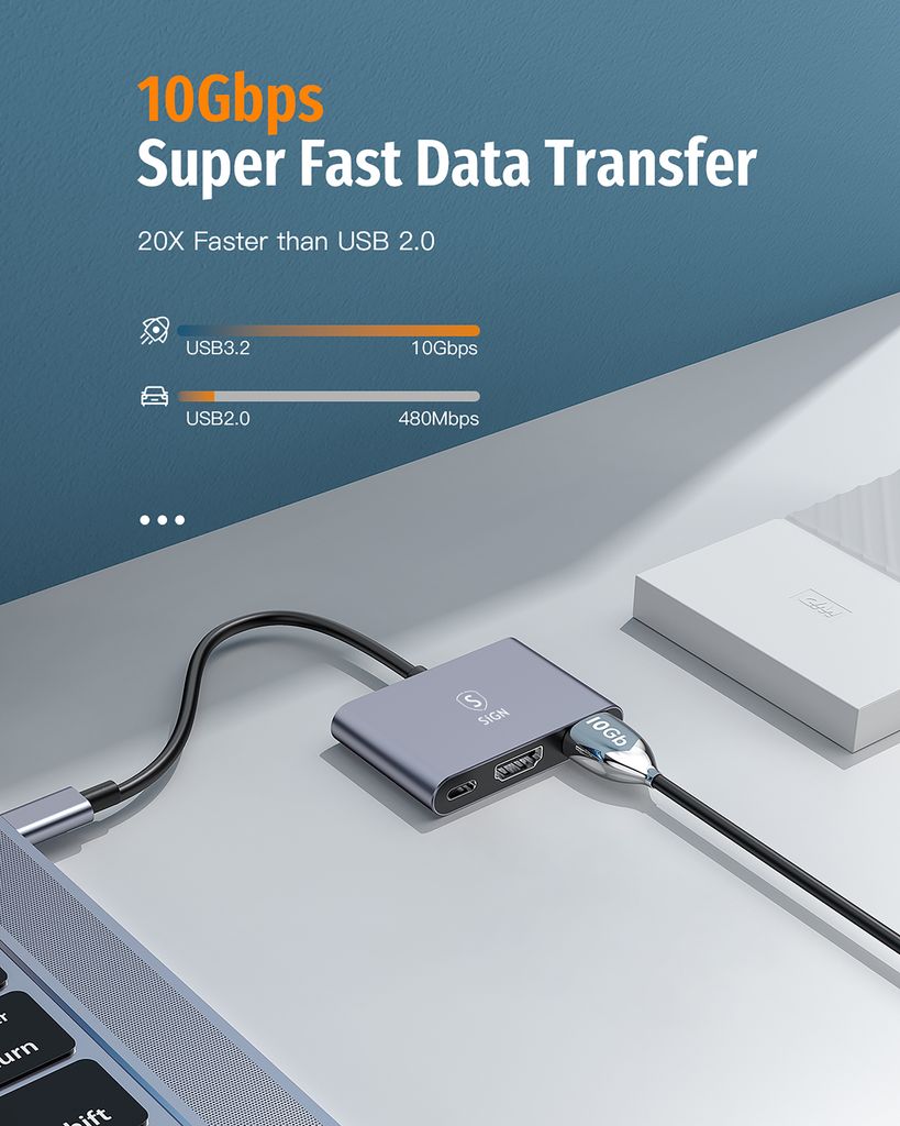 <p>- Meerdere aansluitingen via een compacte USB-C hub<br />