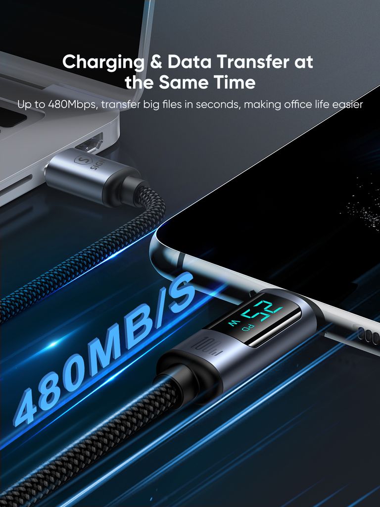 Het geïntegreerde display toont het laadvermogen in realtime, zodat u volledige controle heeft. De kabel ondersteunt gegevensoverdracht tot 480 Mbps, waardoor bestanden, foto's en video's eenvoudig kunnen worden gesynchronisee... Meer