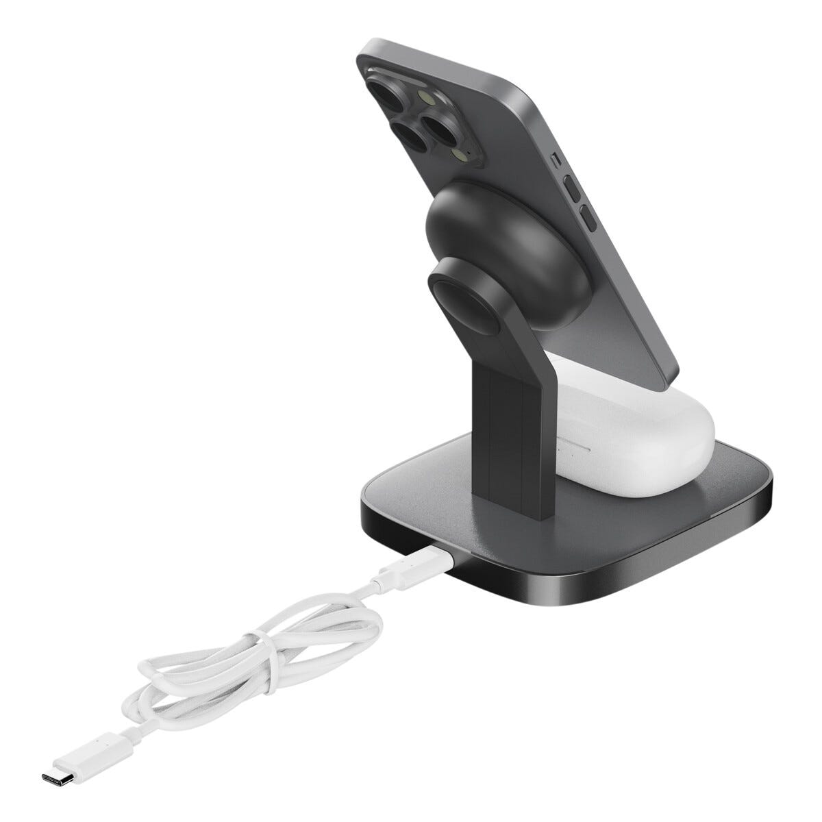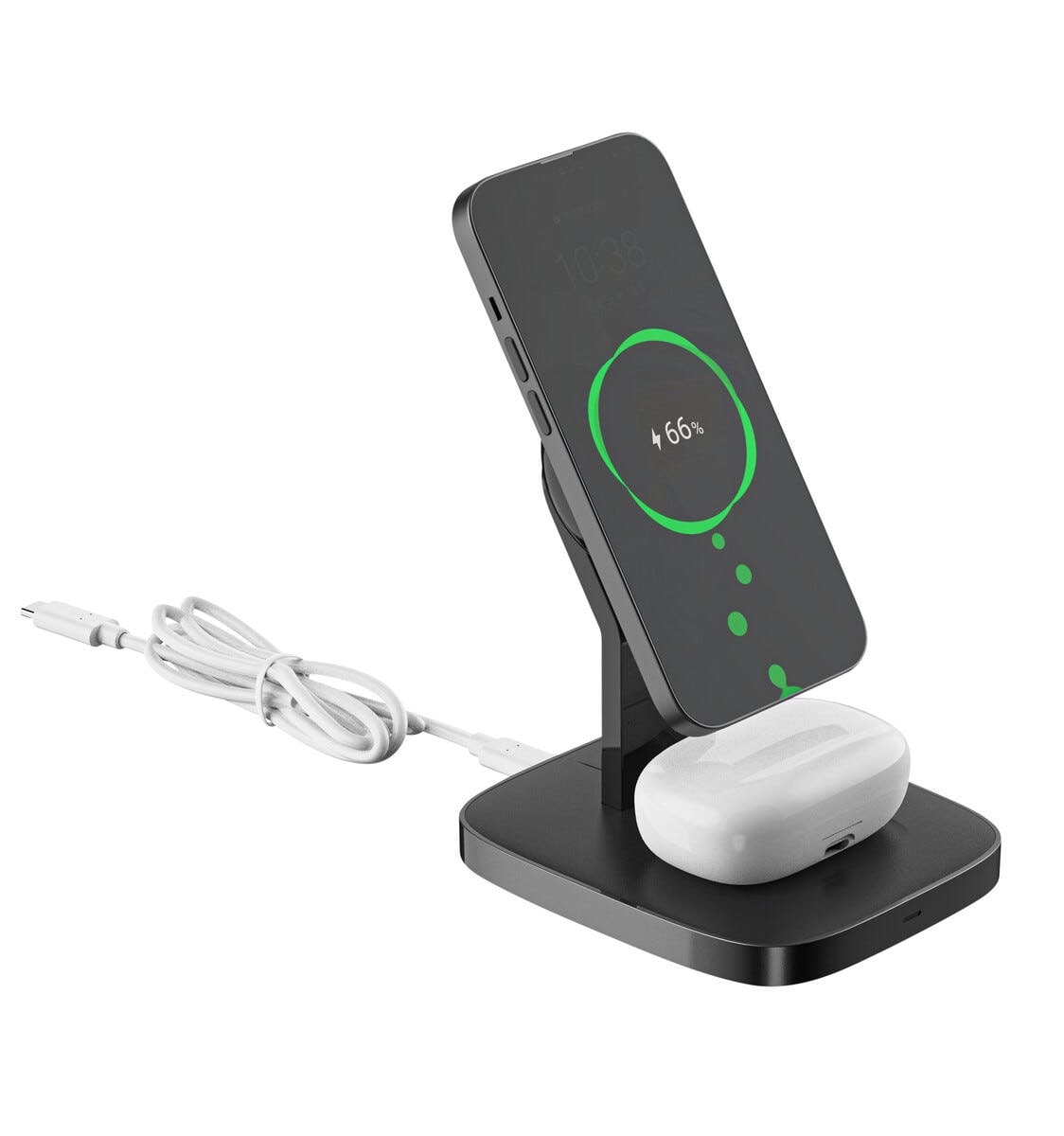 622182-in-1 draadloos magnetisch Qi2 laadstation Zwarthttps://www.phonelife.nl/opladers-en-kabels/magsafe-opladers/2-in-1-draadloos-magnetisch-qi2-laadstation-zwart?channelCountry=NLhttps://www.phonelife.nl/pub_images/original/68741522718750-1.jpgInStock35.95EUR/opladers-en-kabels/magsafe-opladersClas Ohlson<p>Draadloos magnetisch Qi2 laadstation 2-in-1 maakt het eenvoudig om smartphone en oordopjes tegelijk op te laden. Dankzij ondersteuning voor Qi2-technologie en MagSafe-compatibiliteit krijgen compatibele iPhone-modellen een stabiele positionering en efficiënte snellading tot 15 W vermogen. Het geïntegreerde laadoppervlak zorgt voor praktisch opladen van AirPods of andere draadloze TWS-oordopjes parallel. Het praktische standaardontwerp maakt het mogelijk om de telefoon te gebruiken in video- of gespreksmodus tijdens het opladen. Het compacte en stijlvolle ontwerp maakt het laadstation geschikt voor gebruik op bureau, nachtkastje of werkplek.</p>