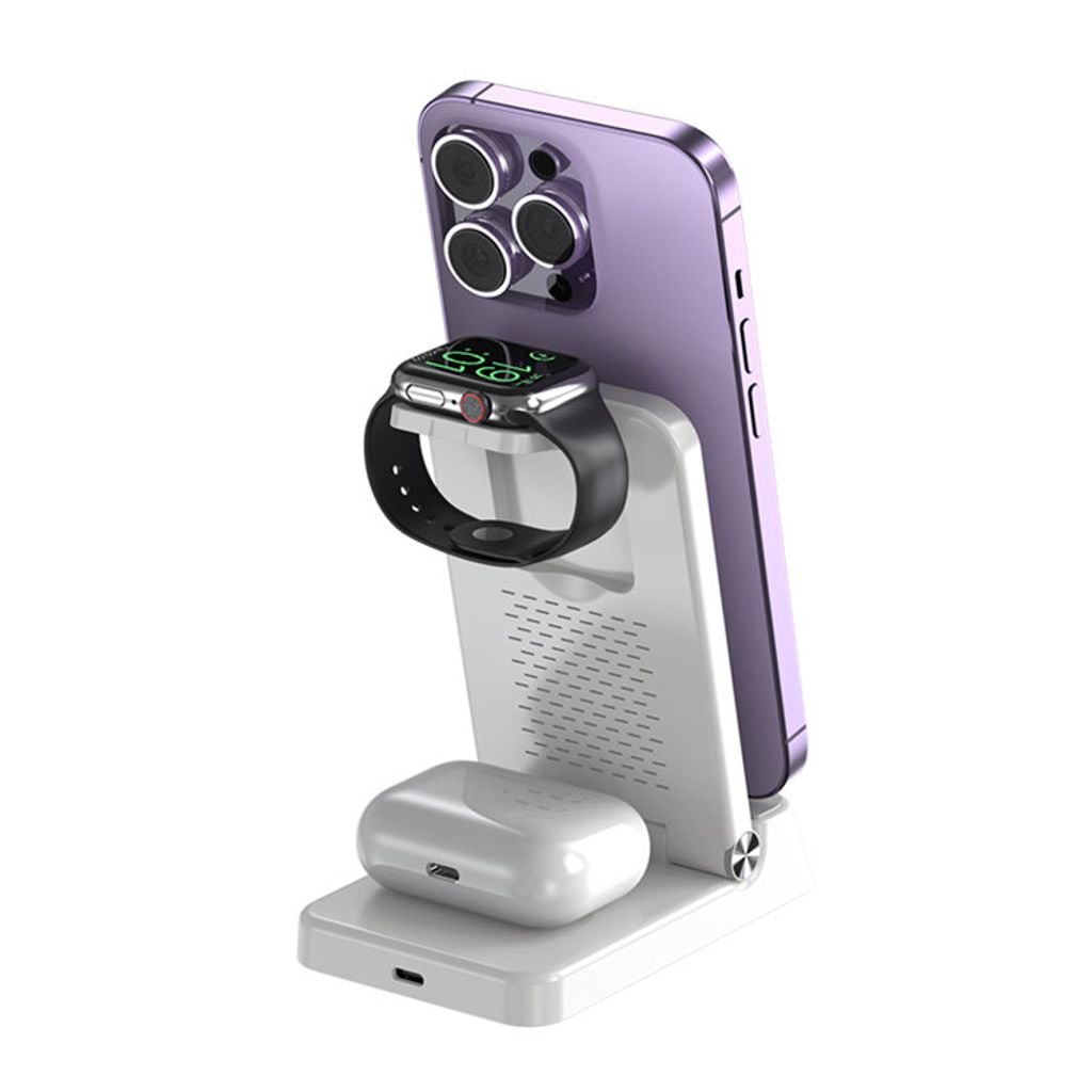 Het laadstation ondersteunt draadloos snelladen tot 15W voor smartphones en heeft aparte laadzones voor Apple Watch en oordopjes. De telefoon kan zowel verticaal als horizontaal worden geplaatst tijdens het opladen. Het laadstation wordt aangesloten via USB-C en is compatibel met alle Qi-compatibele apparaten.... Meer
