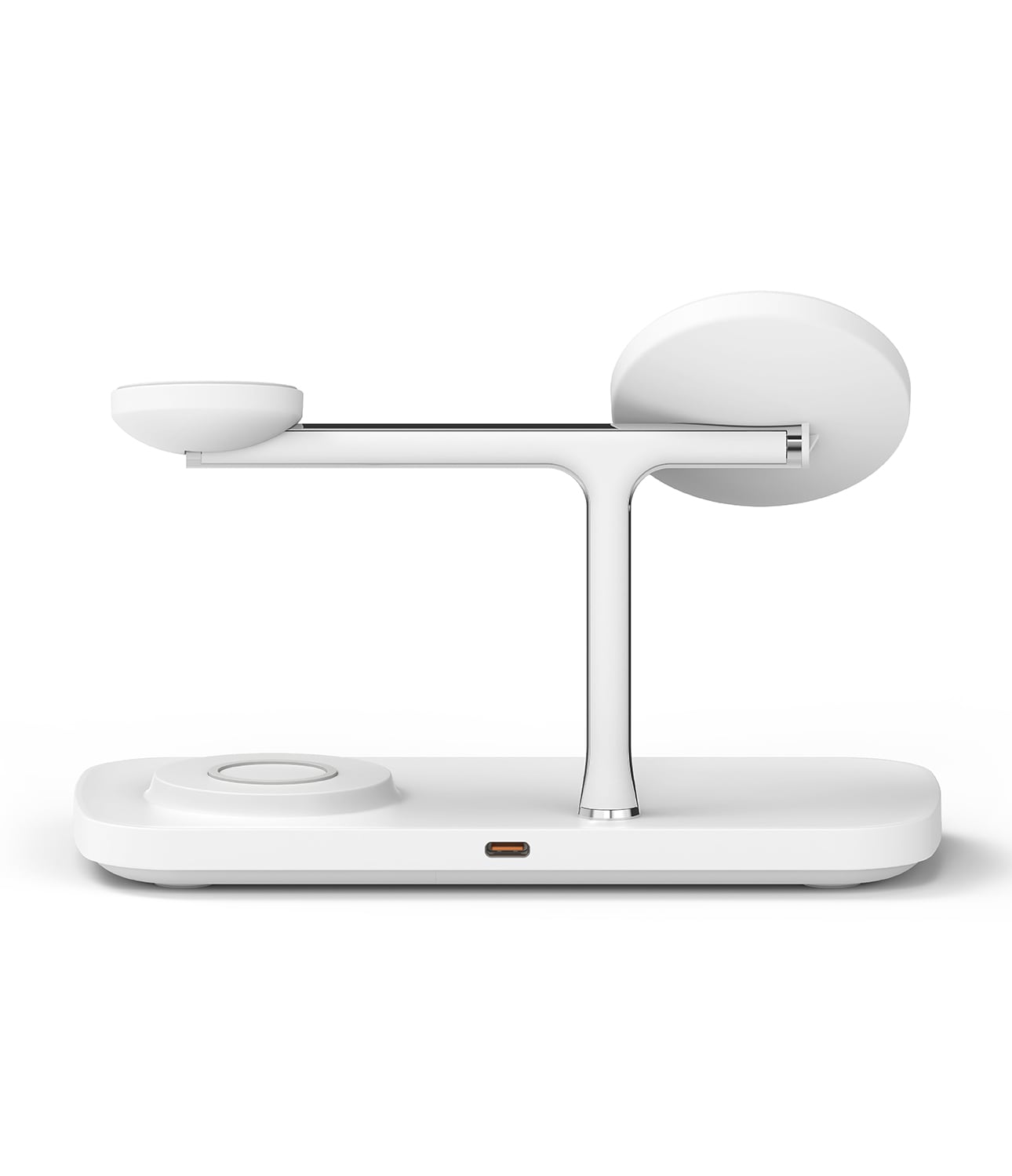 Het oplaadstation biedt snelle en efficiënte oplading met een vermogen van 15W voor smartphones, 3W voor de Apple Watch / Galaxy Watch en 3W voor draadloze oordopjes.