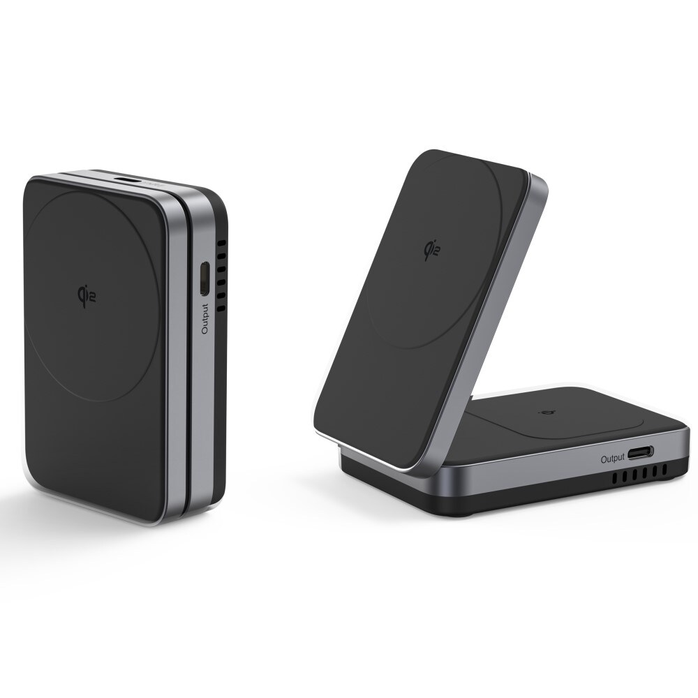 Compact 2-in-1 Qi2 Draadloze Magnetische Opvouwbare Oplaadstation zwart