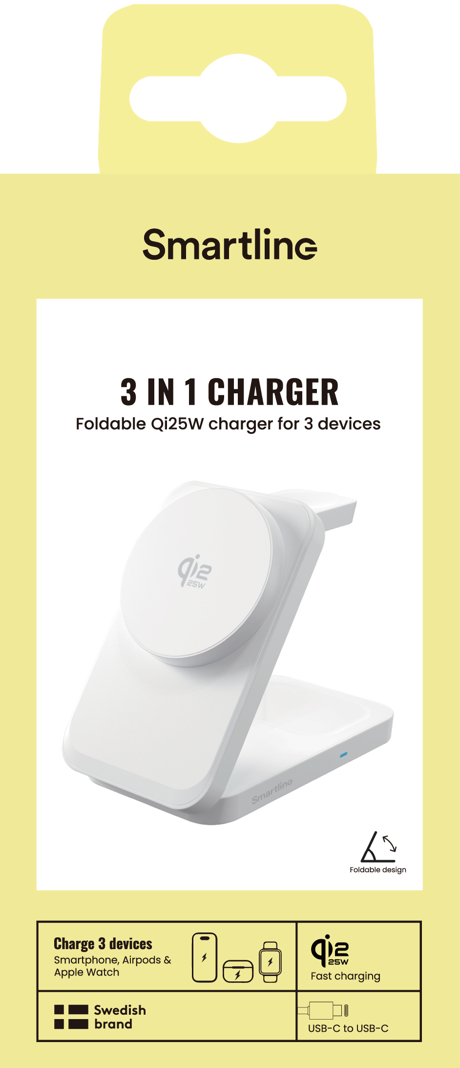 Smartline - 3-in-1 Foldable Qi2.2 25W MagSafe-oplaadpunt Wit