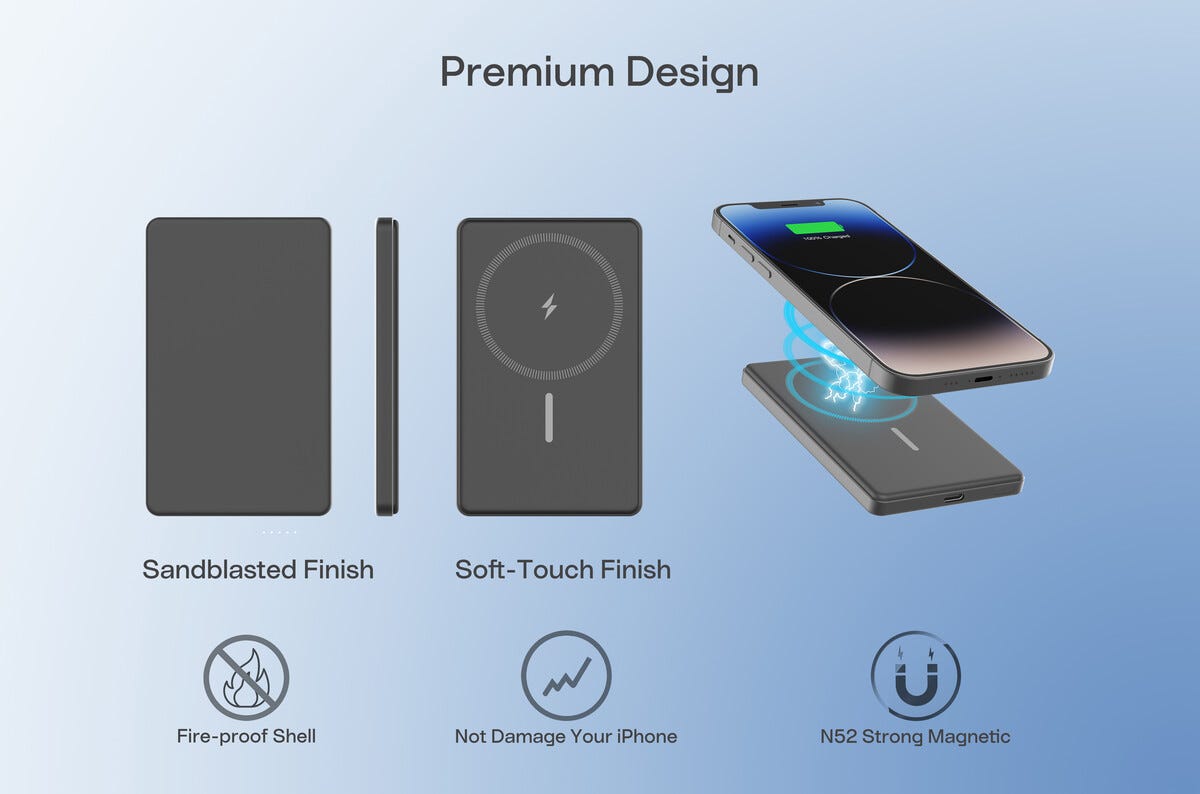 62133Magnetische Kabellose Powerbank 5000mAh 15W Grijshttps://www.phonelife.nl/opladers-en-kabels/powerbanks/magnetische-kabellose-powerbank-5000mah-15w-grijs?channelCountry=NLhttps://www.phonelife.nl/pub_images/original/68734964957214.jpgInStock27.95EUR/opladers-en-kabels/powerbanks<p>Compacte en slanke draadloze magnetische powerbank waarmee je je apparaten eenvoudig opgeladen houdt waar je ook bent. De krachtige capaciteit van 5000 mAh biedt betrouwbare extra energie wanneer het batterijniveau laag wordt en maakt deze powerbank ideaal voor reizen, woon-werkverkeer en dagelijks gebruik. Dankzij ondersteuning voor MagSafe en Qi laad je compatibele apparaten stabiel en efficiënt op via magnetisch draadloos contact. De powerbank kan ook met kabel via USB-C worden gebruikt, wat flexibele laadmogelijkheden biedt. Het product is goedgekeurd om mee te nemen op vliegreizen en combineert hoge prestaties, veilig energiebeheer en draagbare functionaliteit in een praktisch formaat.</p>