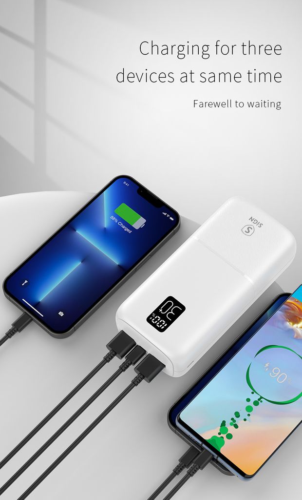 61517Powerbank 30000 mAh drievoudige uitgang 2x USB-A + 1x USB-C Withttps://www.phonelife.nl/opladers-en-kabels/powerbanks/powerbank-30000-mah-drievoudige-uitgang-2x-usb-a-1x-usb-c-wit?channelCountry=NLhttps://www.phonelife.nl/pub_images/original/SNPB-30MAHWH1.jpgInStock35.95EUR/opladers-en-kabels/powerbanksSiGN<p>Met deze krachtige powerbank van SiGN kun je tot drie apparaten tegelijk opladen - een praktische en betrouwbare metgezel voor reizen, werk en dagelijks gebruik. Met de hoge capaciteit van 30.000 mAh heb je voldoende stroom om je smartphone meerdere keren op te laden en je apparaten de hele dag te gebruiken.</p>