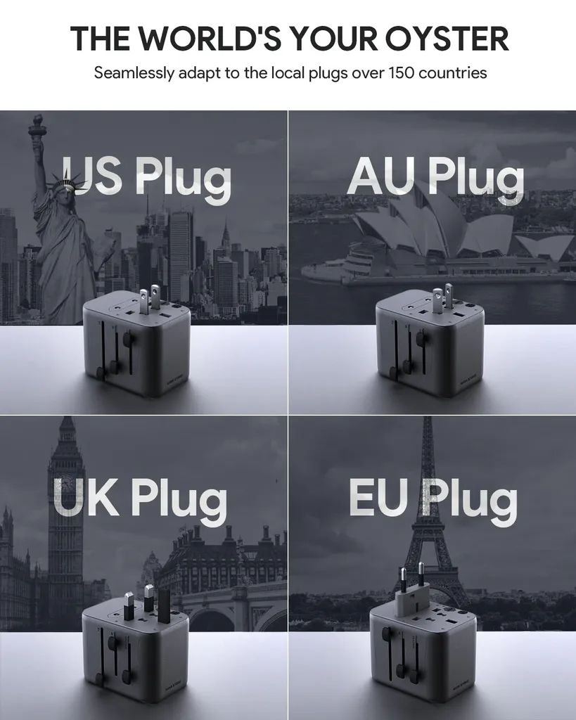 - Universele reisadapter voor meer dan 150 landen
