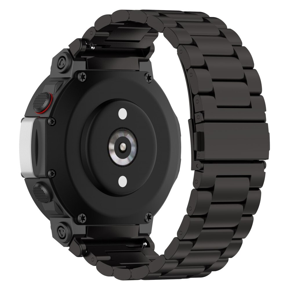 Bandje van rvs voor Amazfit T-Rex 2. Deze armband is zeer duurzaam en geeft je smartwatch de uitstraling van een gewoon horloge. Inclusief bevestigingsmechanisme zodat je het bandje eenvoudig kunt verwisselen met je huidige armband.