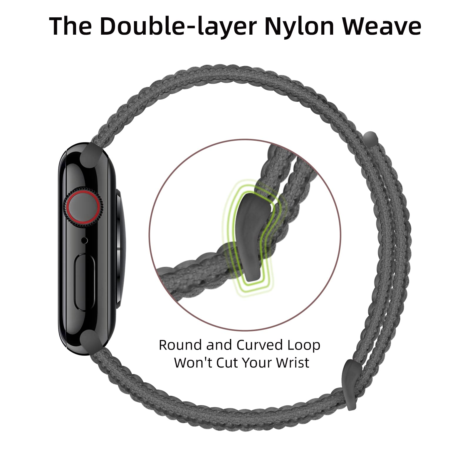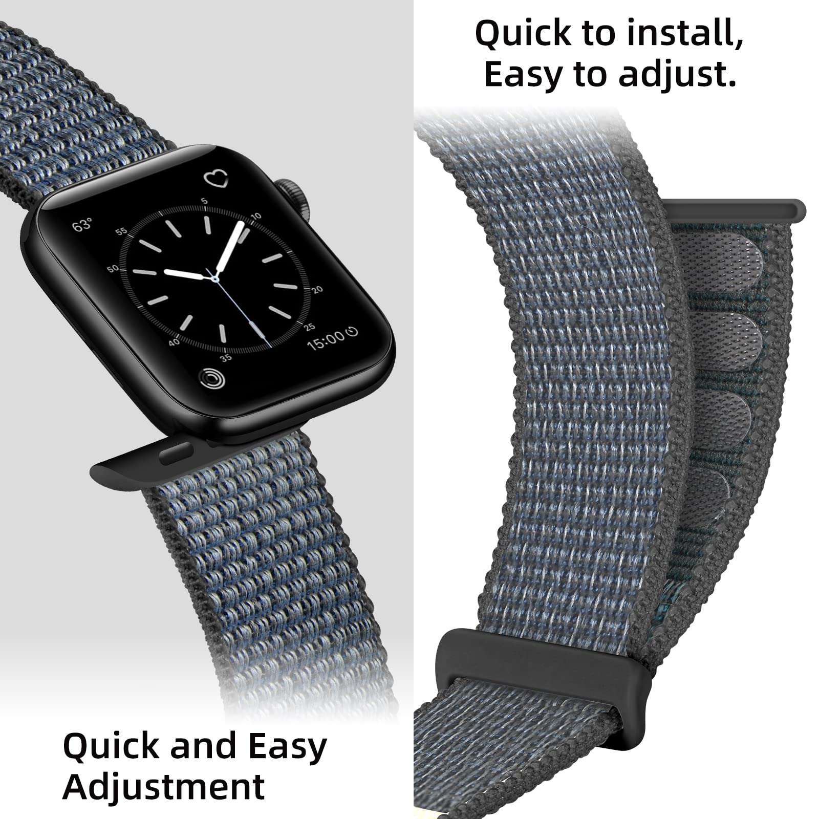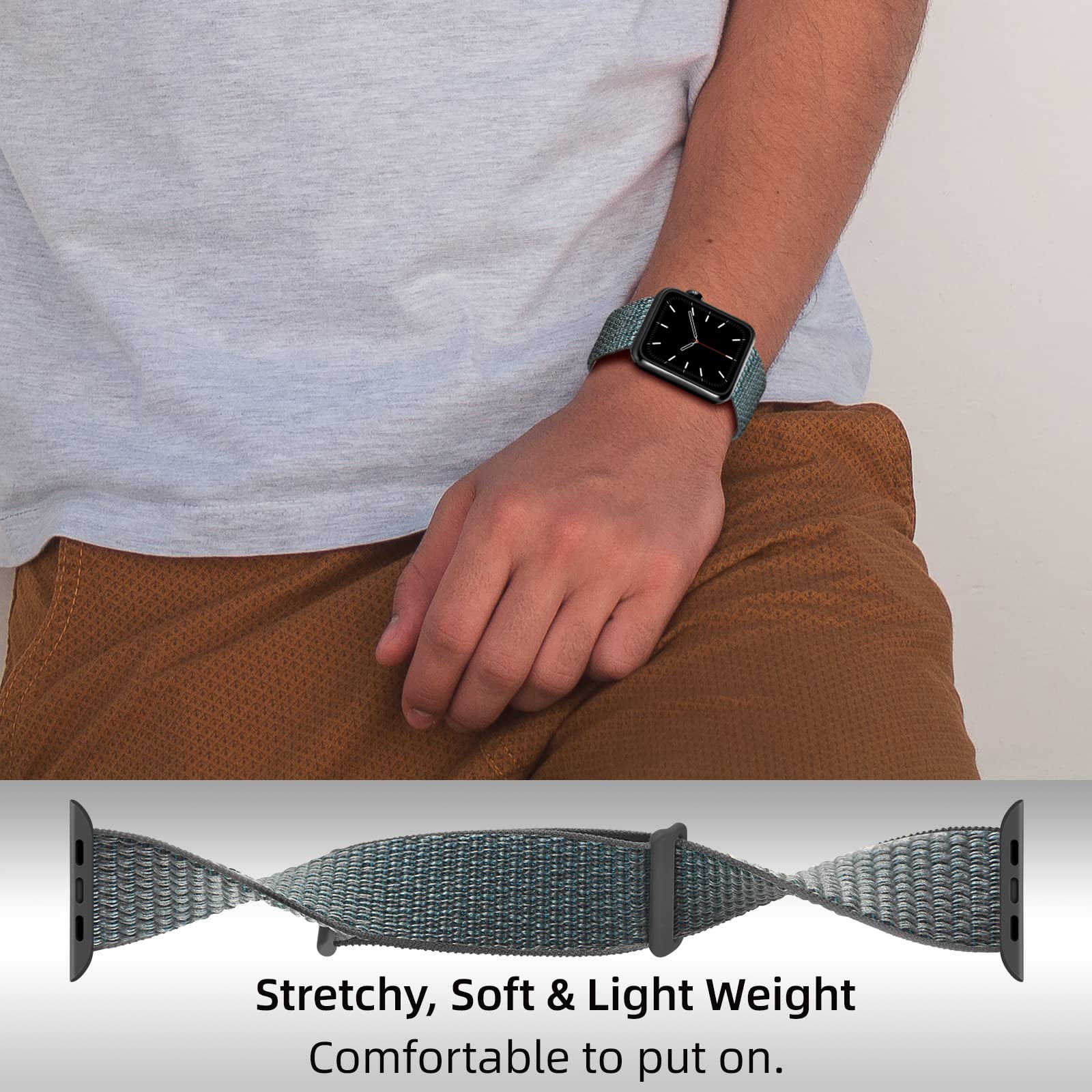 Armband van zacht en comfortabel nylon, geschikt voor Apple Watch Series 1-3 38mm. De armband is eenvoudig verstelbaar en wordt gesloten met een handige klittenbandsluiting, zodat hij de hele dag comfortabel en stevig om de pols zit.