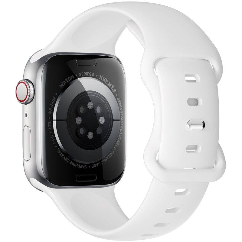 Siliconen bandje voor Apple Watch Series 4-6 40mm. Omdat de band volledig van siliconen is gemaakt, is hij bestand tegen alle vormen van vocht. Dit maakt hem ideaal voor sportieve en actieve gebruikers of voor wie de smartwatch de hele dag draagt.