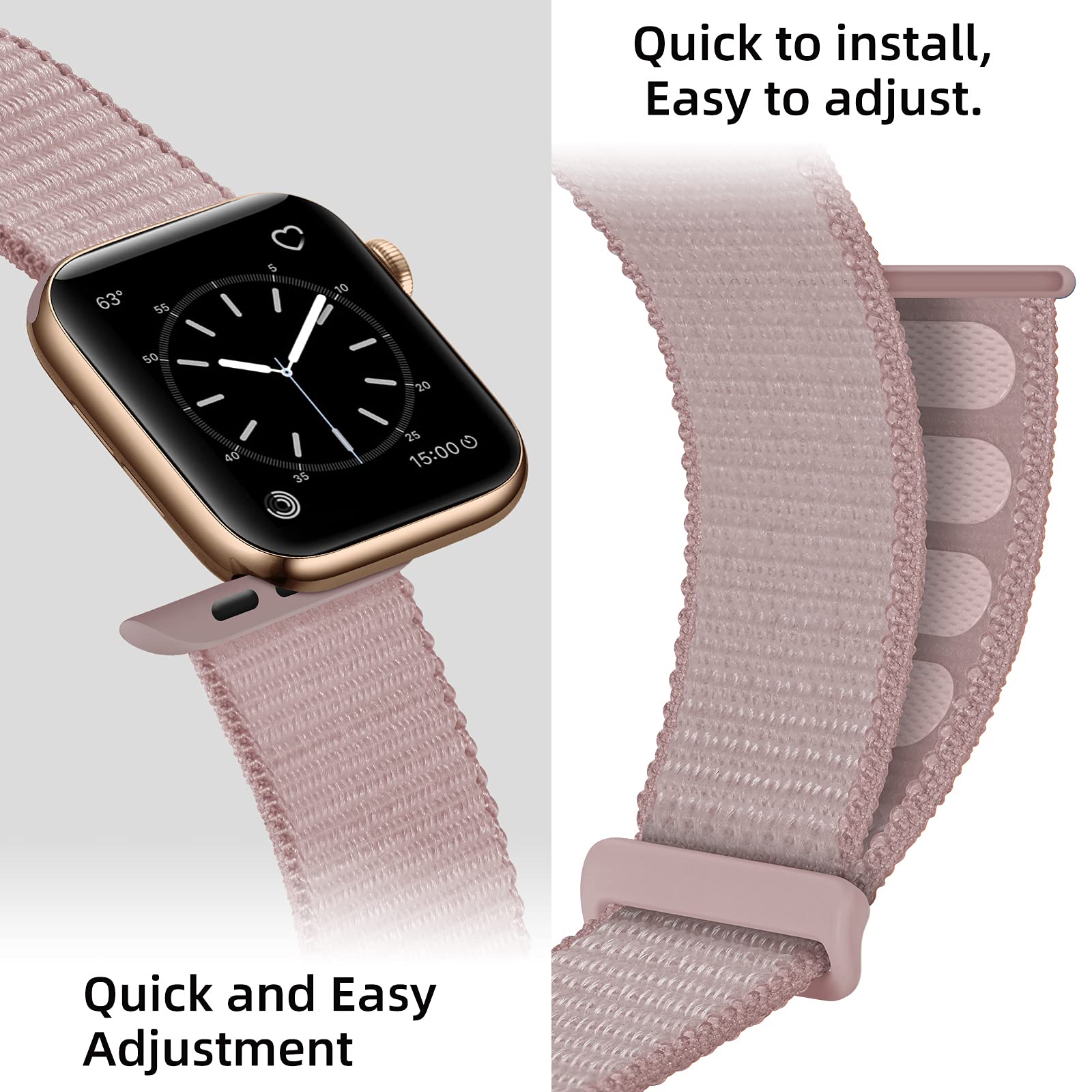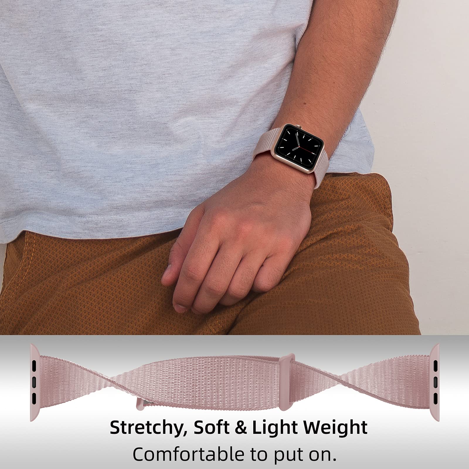 Armband van zacht en comfortabel nylon, geschikt voor Apple Watch SE 3 40mm. De armband is eenvoudig verstelbaar en wordt gesloten met een handige klittenbandsluiting, zodat hij de hele dag comfortabel en stevig om de pols zit.