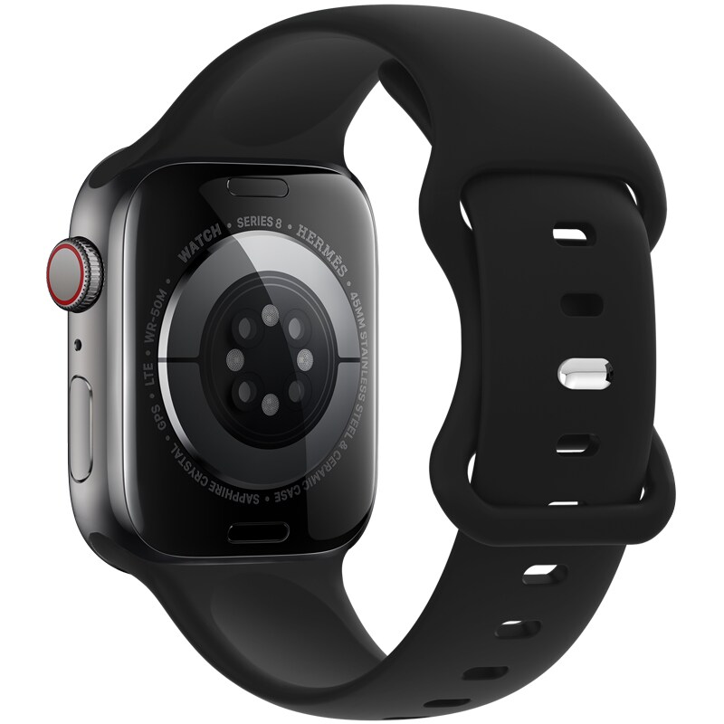 Siliconen bandje voor Apple Watch SE 3 40mm. Omdat de band volledig van siliconen is gemaakt, is hij bestand tegen alle vormen van vocht. Dit maakt hem ideaal voor sportieve en actieve gebruikers of voor wie de smartwatch de hele dag draagt.