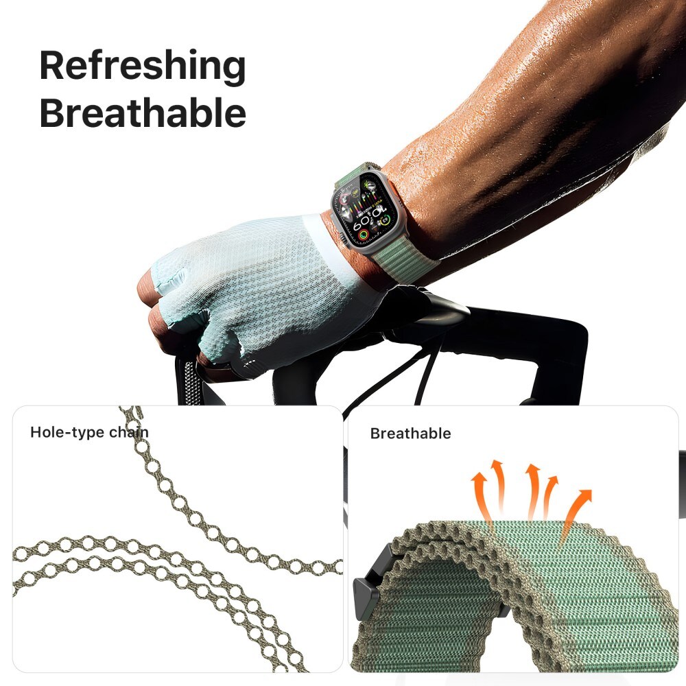 Nylonband in een stijlvol en slim ontwerp voor Apple Watch SE 44mm van Dux Ducis. Gemaakt van een nylonmateriaal dat licht, zacht en duurzaam is, perfect voor mensen die actief zijn en regelmatig sporten, omdat het bestand is tegen zowel vocht als water.