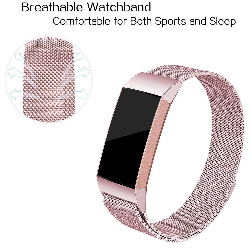 Milanese bandje voor Fitbit Charge 3, Charge 4. Het bandje is gemaakt van gepolijst roestvrij staal en straalt een exclusieve uitstraling en gevoel uit. De magnetische sluiting maakt het eenvoudig om de band perfect aan te passen aan je pols en hoe strak je het horloge wilt dragen.