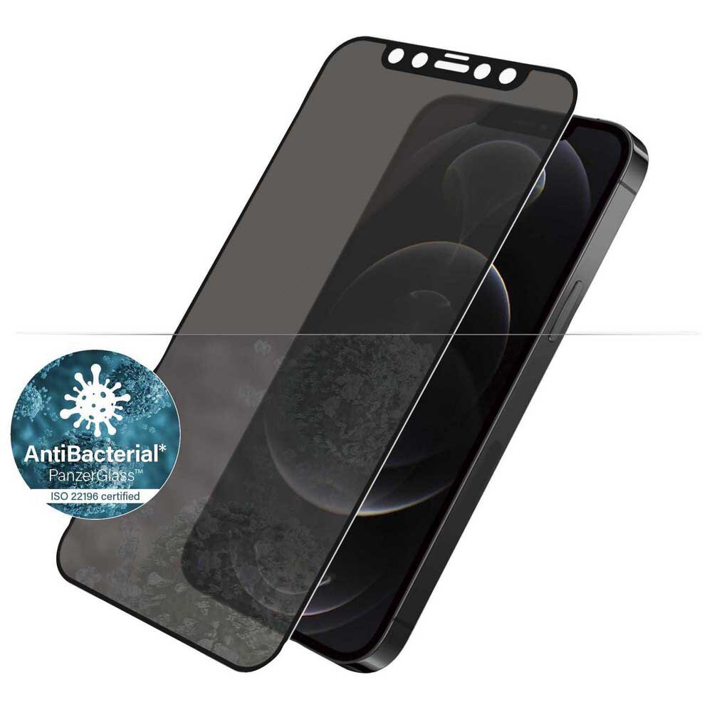 Screenprotector gemaakt van tempered glas met privacyfilter voor iPhone 12 van Panzerglass. Dit is een premium screenprotector van de hoogste kwaliteit, die je telefoonscherm beschermt tegen krassen en andere beschadigingen. De screenprotector heeft bovendien een antibacteriële coating die 99,99% van alla bacteriën doodt.