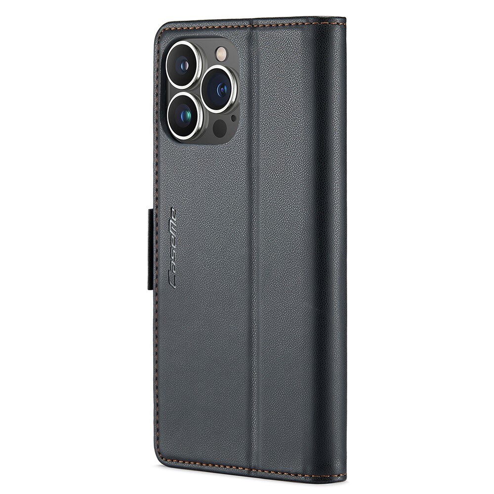 Slim Bookcover hoesje voor Apple iPhone 15 Pro Max. Het hoesje biedt volledige bescherming voor je telefoon zonder dat het ten koste gaat van de stijl. De voorklep blijft gesloten met onzichtbare magneten, wat zorgt voor een slank ontwerp dat je telefoon niet lomp maakt. Dankzij de RFID-bescherming zijn je pasjes veilig opgeborgen in het hoesje.