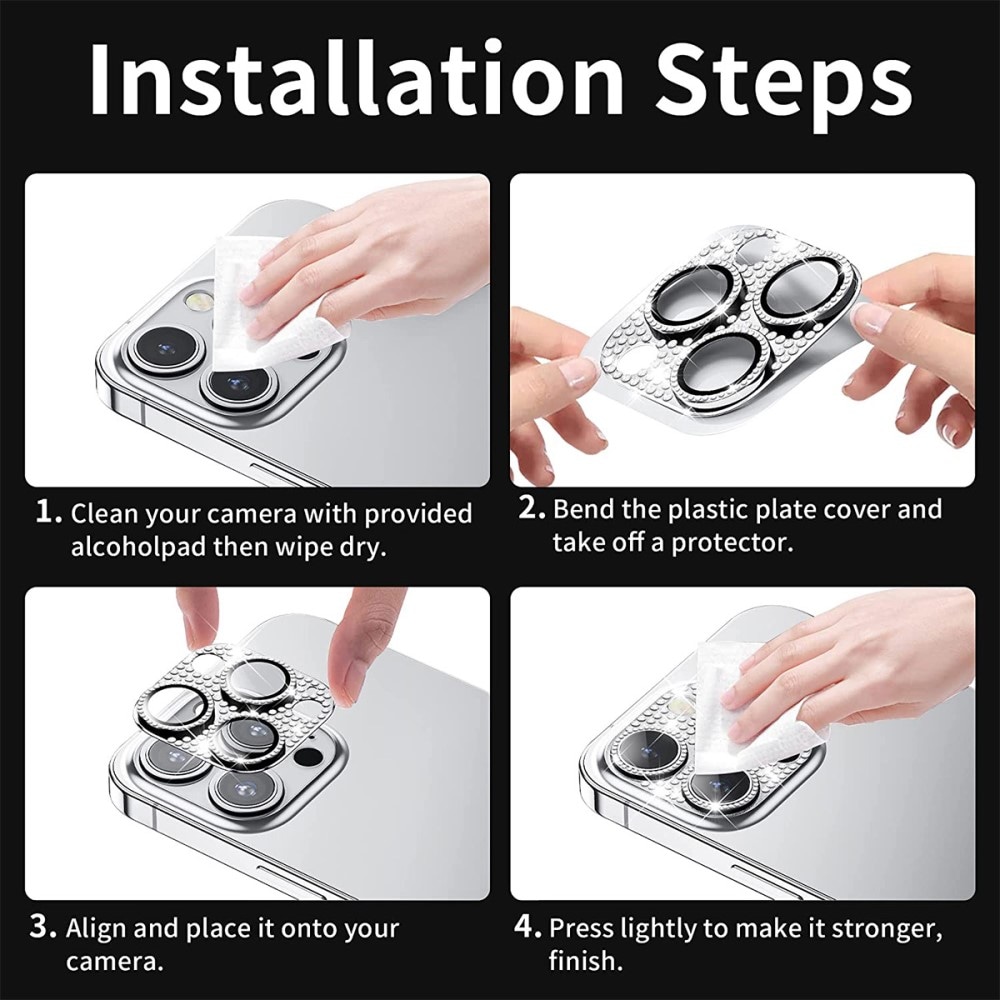 Bescherm de camerabehuizing van je iPhone 15 Pro Max met deze schitterende camera protector van Hat Prince. De beschermer bestaat uit een aluminium frame met hoogwaardig gehard glas om de cameralenzen intact en krasvrij te houden. De glinsterende steentjes zorgen ervoor dat je telefoon extra luxueus aanvoelt terwijl de gehele camera wordt beschermd.
