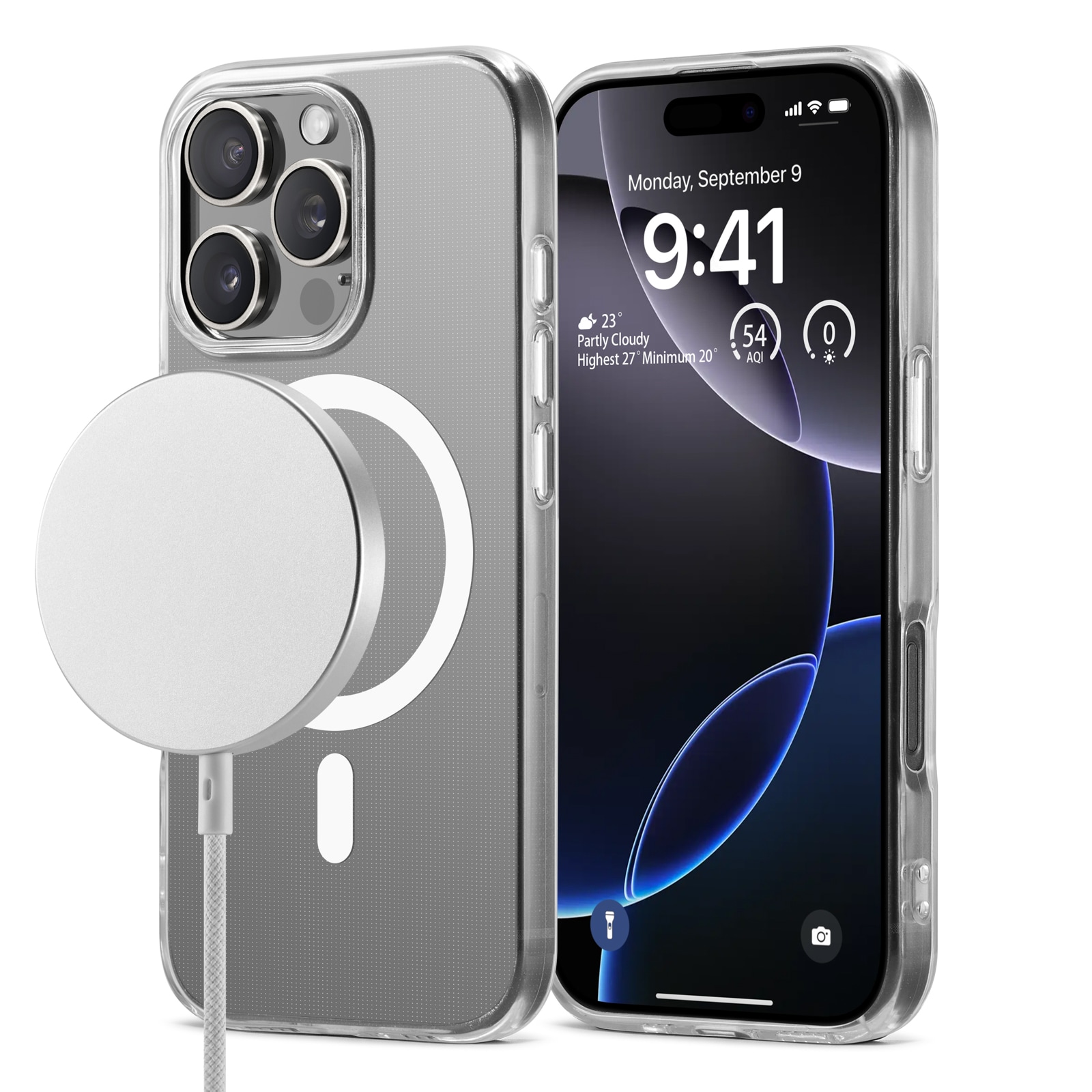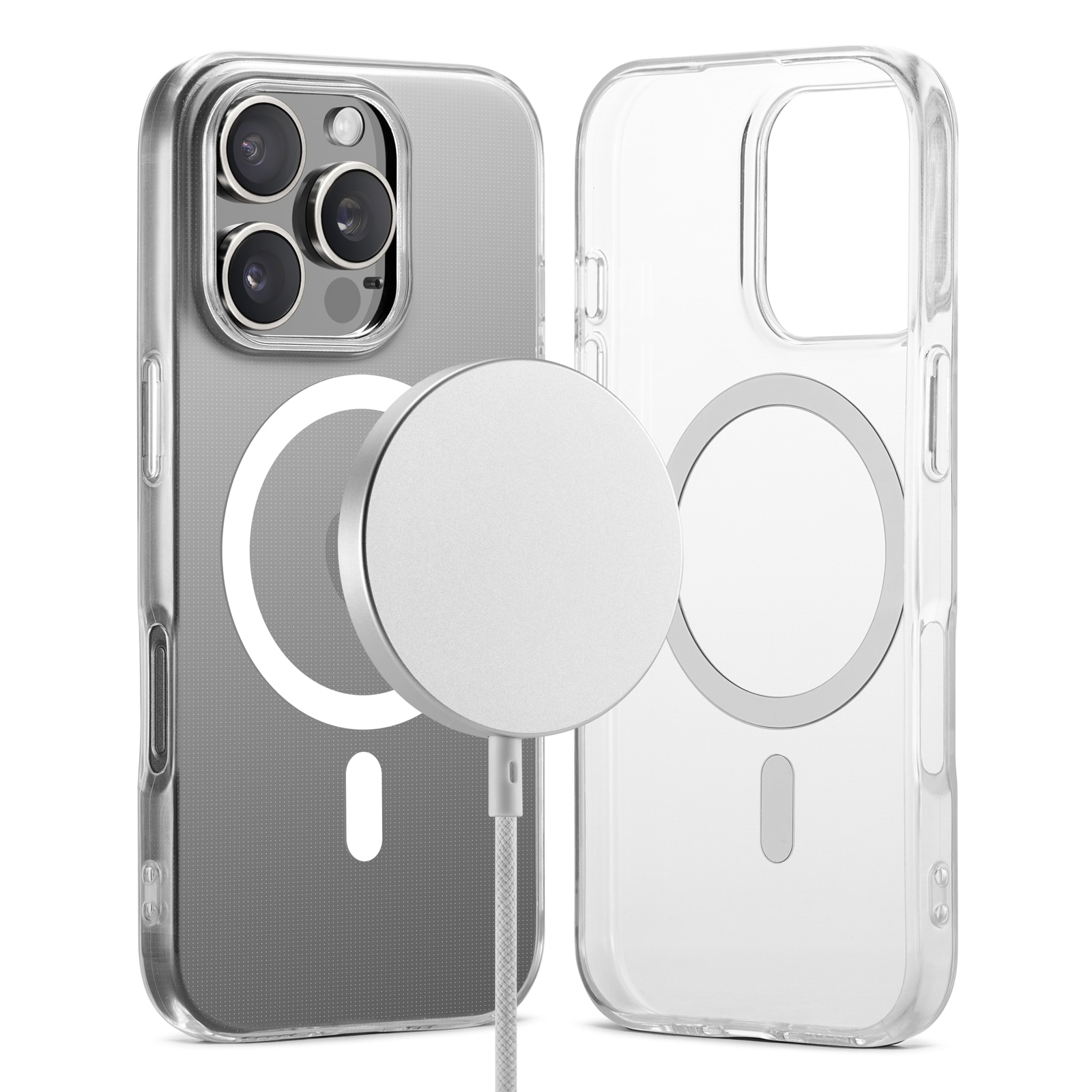 De hoes heeft een ingebouwde magnetische ring die naadloos werkt met MagSafe-accessoires zoals opladers en kaarthouders.