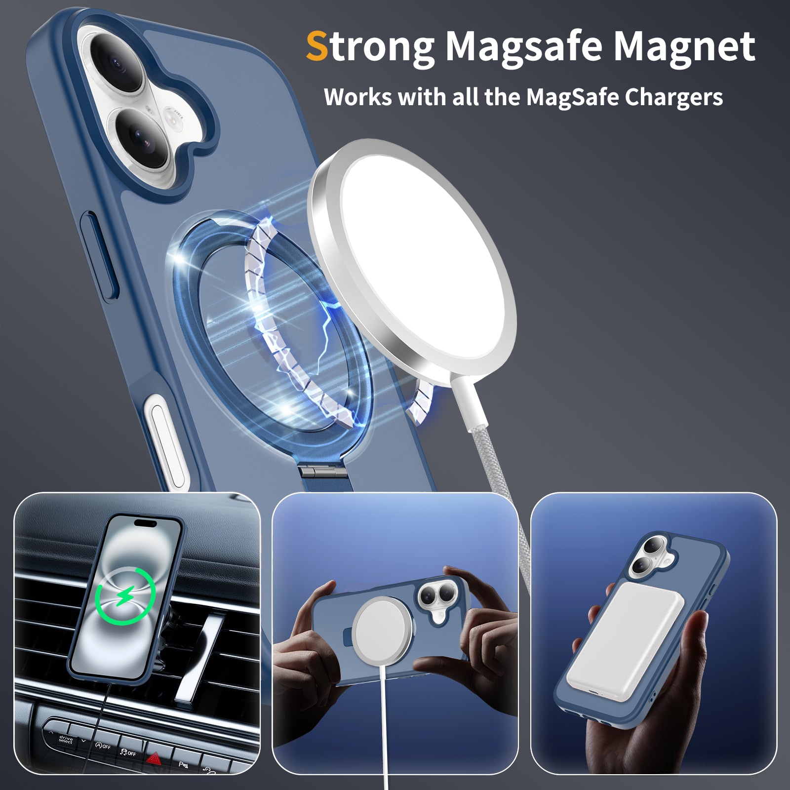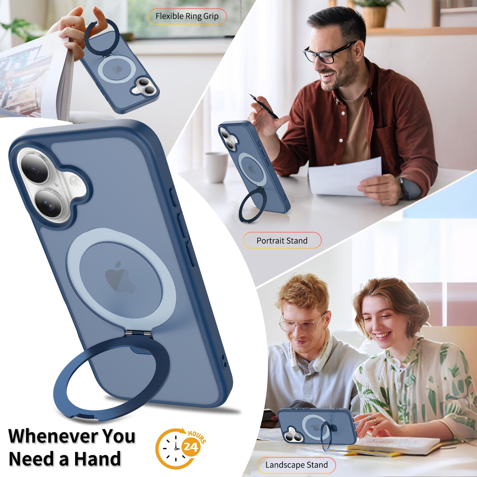Hybride backcase met uitvouwbare magnetische ring voor Apple iPhone 16. Voor de beste bescherming van je telefoon is dit hybride hoesje tweeledig en bestaat uit een kern van TPU-siliconen en een buitenkant van plastic. De magnetische ring op de achterkant kan gebruikt worden met MagSafe-compatibele accessoires zoals laders en pasjeshouders. De ring kan tevens uitgevouwen worden tot een standaard om naar filmpjes of YouTube te kijken.