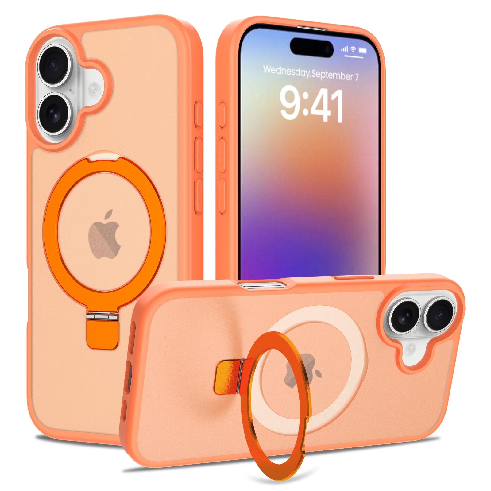 Hybride backcase met uitvouwbare magnetische ring voor Apple iPhone 17. Voor de beste bescherming van je telefoon is dit hybride hoesje tweeledig en bestaat uit een kern van TPU-siliconen en een buitenkant van plastic. De magnetische ring op de achterkant kan gebruikt worden met MagSafe-compatibele accessoires zoals laders en pasjeshouders. De ring kan tevens uitgevouwen worden tot een standaard om naar filmpjes of YouTube te kijken.