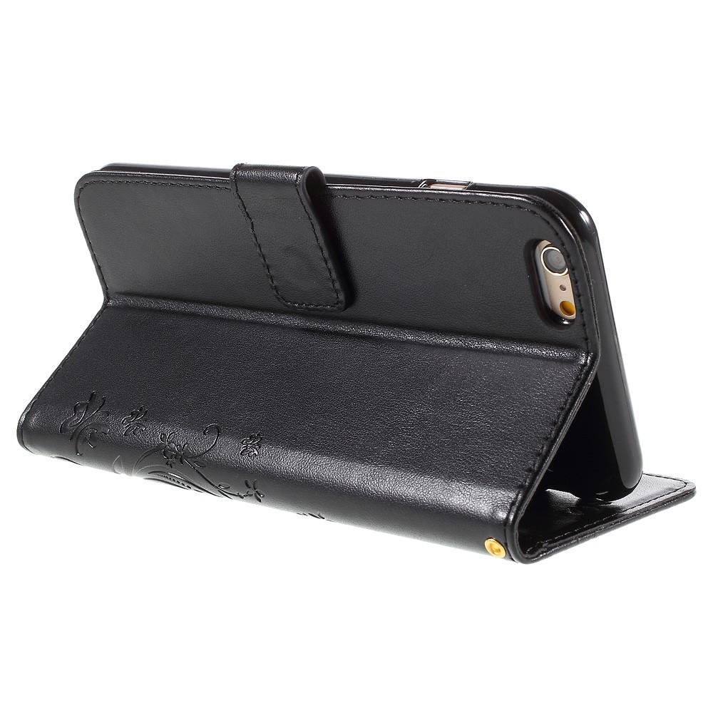 Bookcover hoesje met een vlinderdessin in het leer gestanst voor Apple iPhone 6/6S. Het hoesje is zowel mooi als functioneel en beschermt je hele telefoon tegen krassen, beschadigingen en viezigheid.