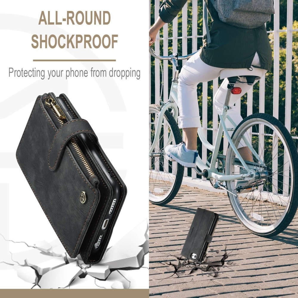 Bookcover hoesje voor Apple iPhone SE 2020 van CaseMe. De portemonnee beschikt over 7 kaarthouders, een vak voor briefgeld en een ruim muntvak met ritssluiting.