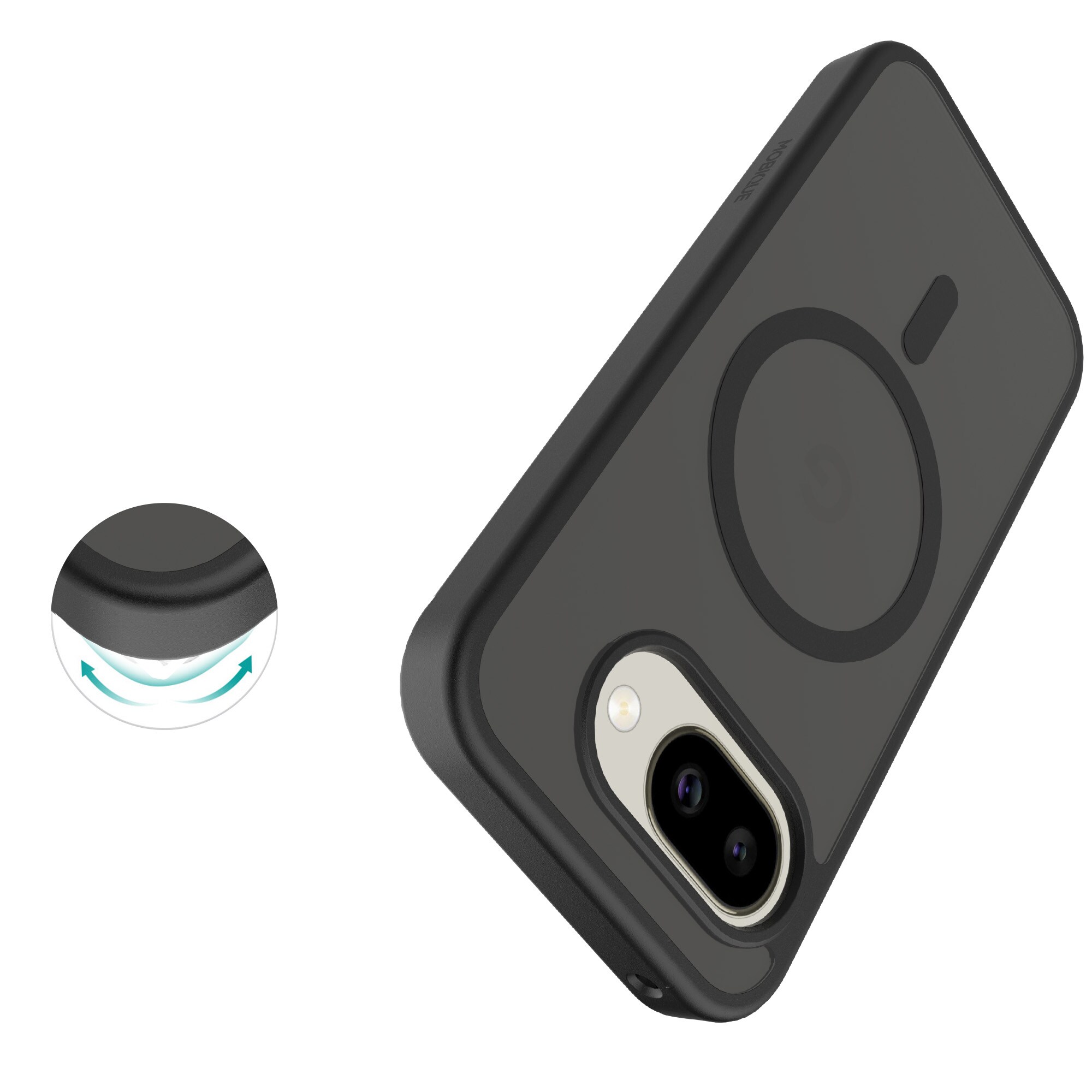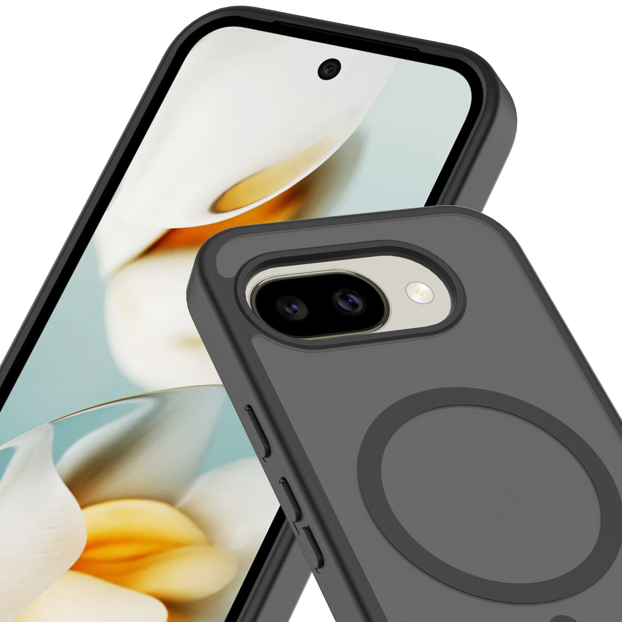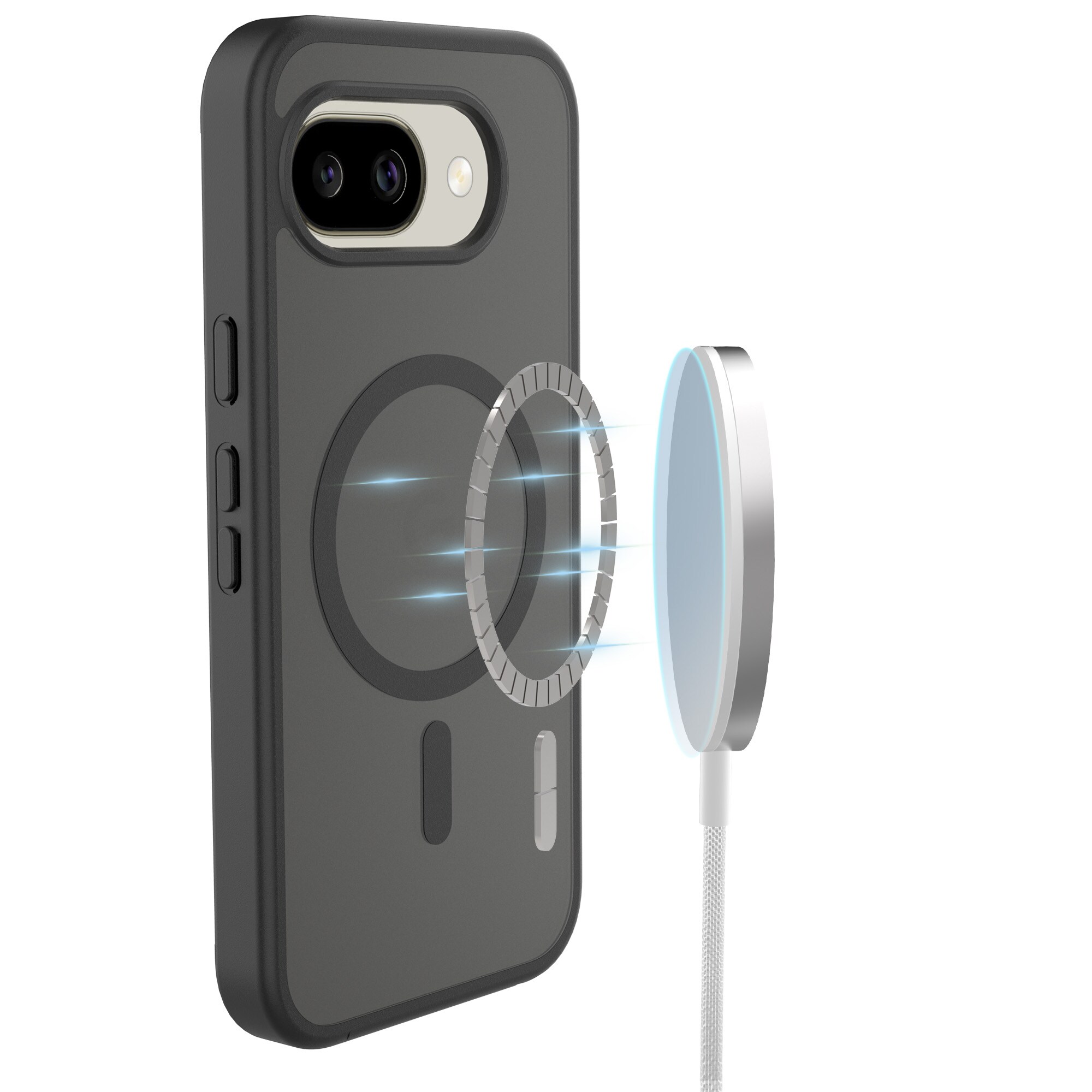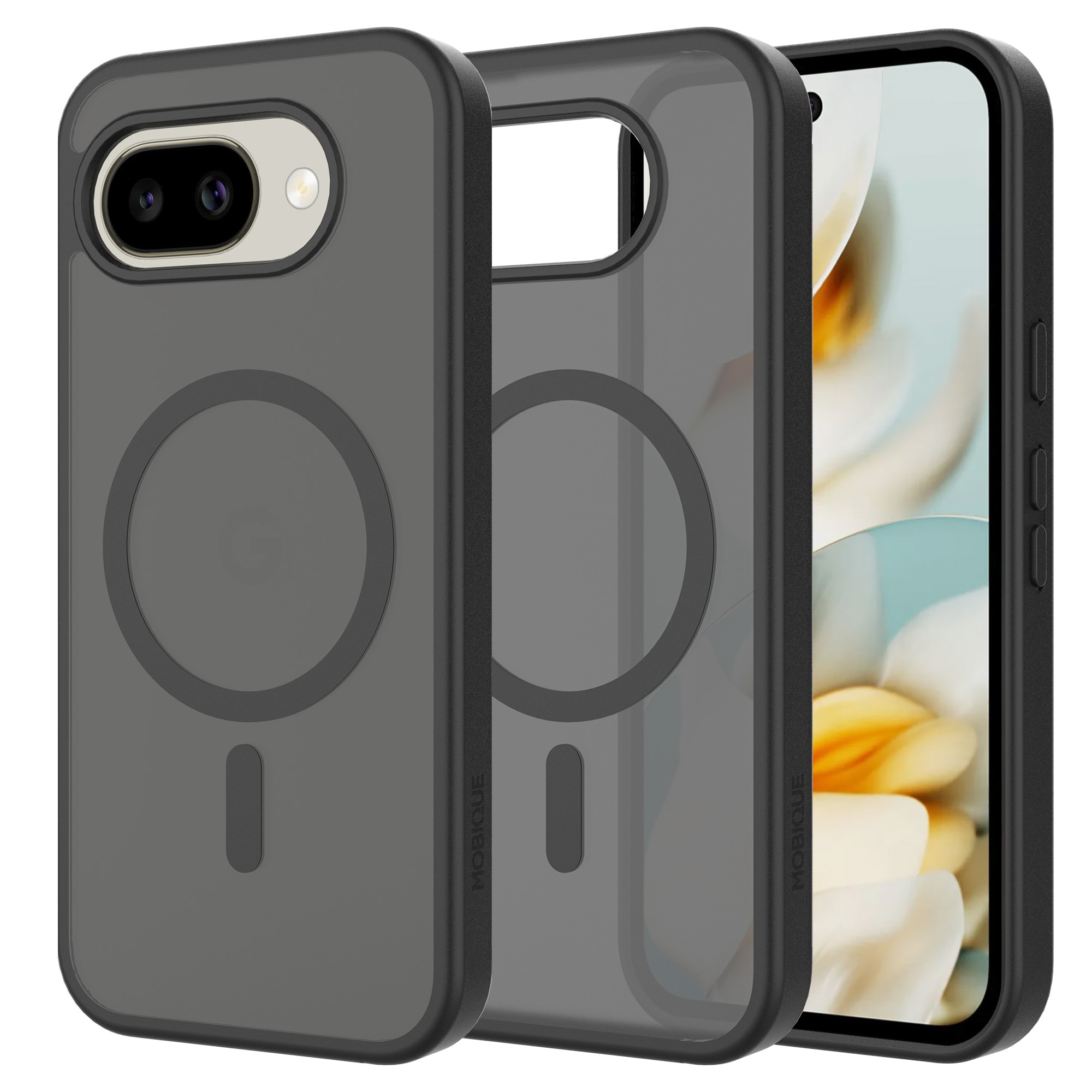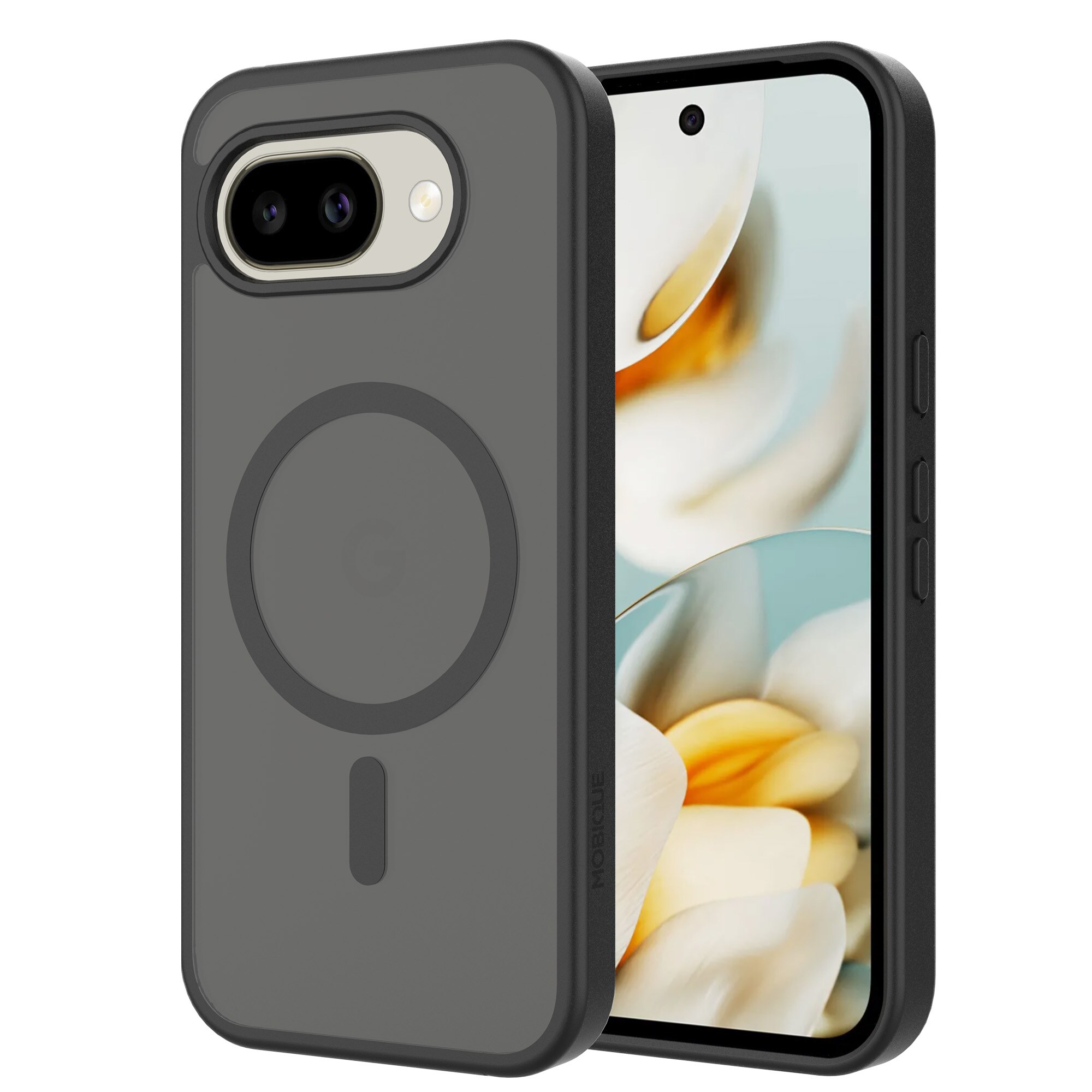Hybride hoes met magnetische ring voor Google Pixel 10a van Mobique. De hoes heeft een stijlvolle, matte afwerking en is voorzien van een magnetische ring aan de achterkant. Deze ring maakt het gemakkelijk om de hoes te gebruiken met MagSafe-accessoires zoals opladers en kaarthouders.