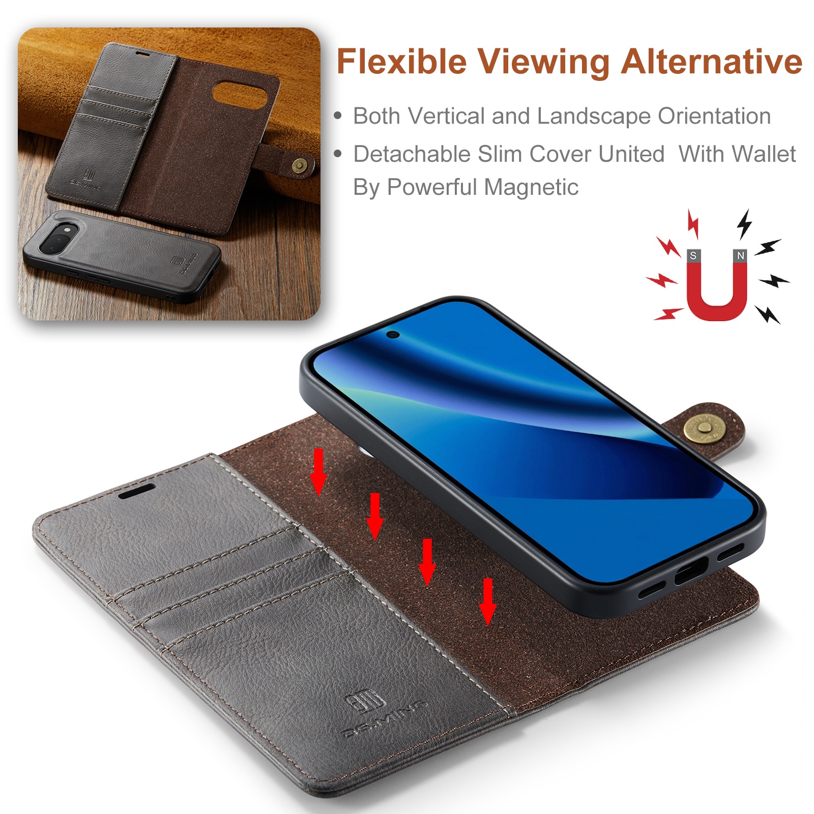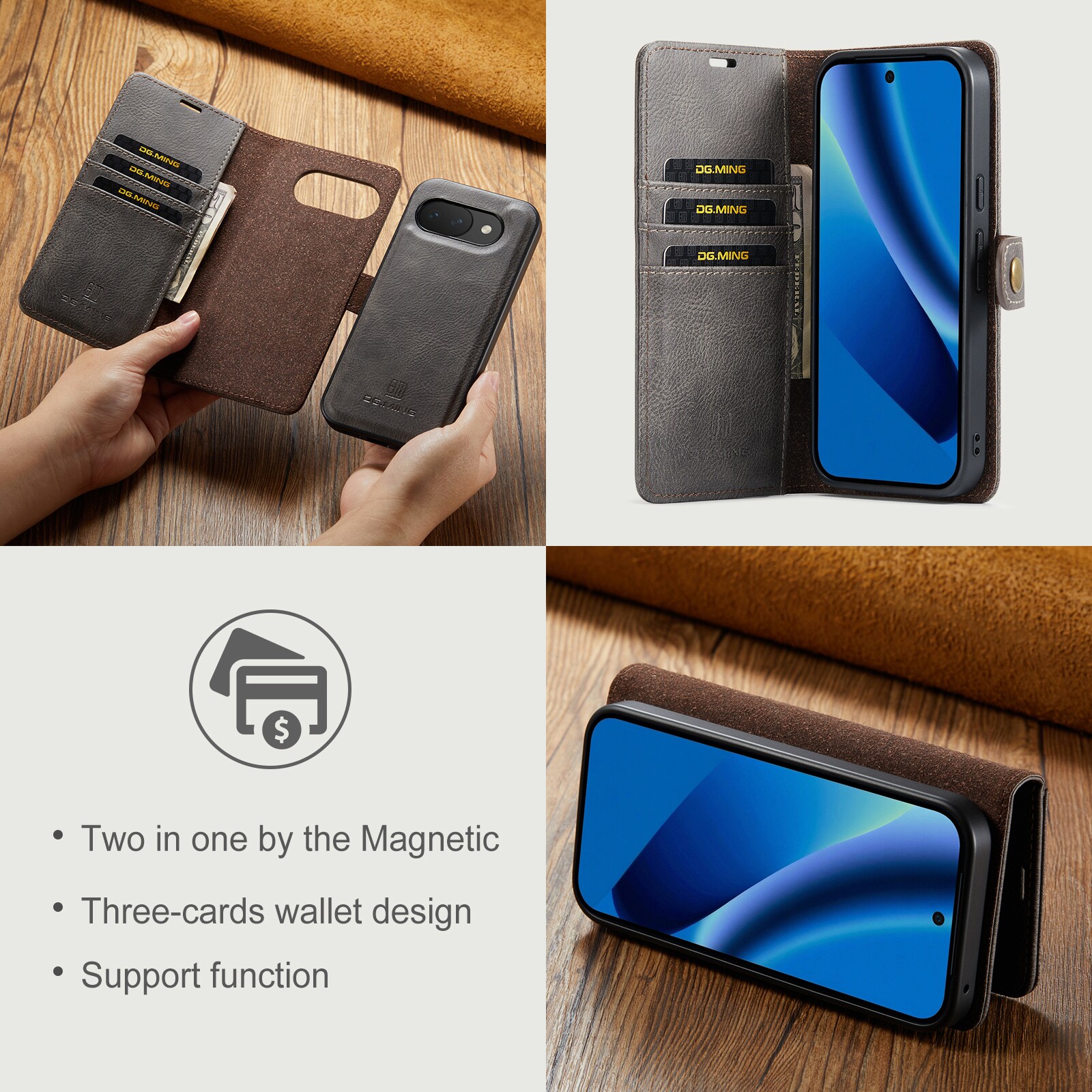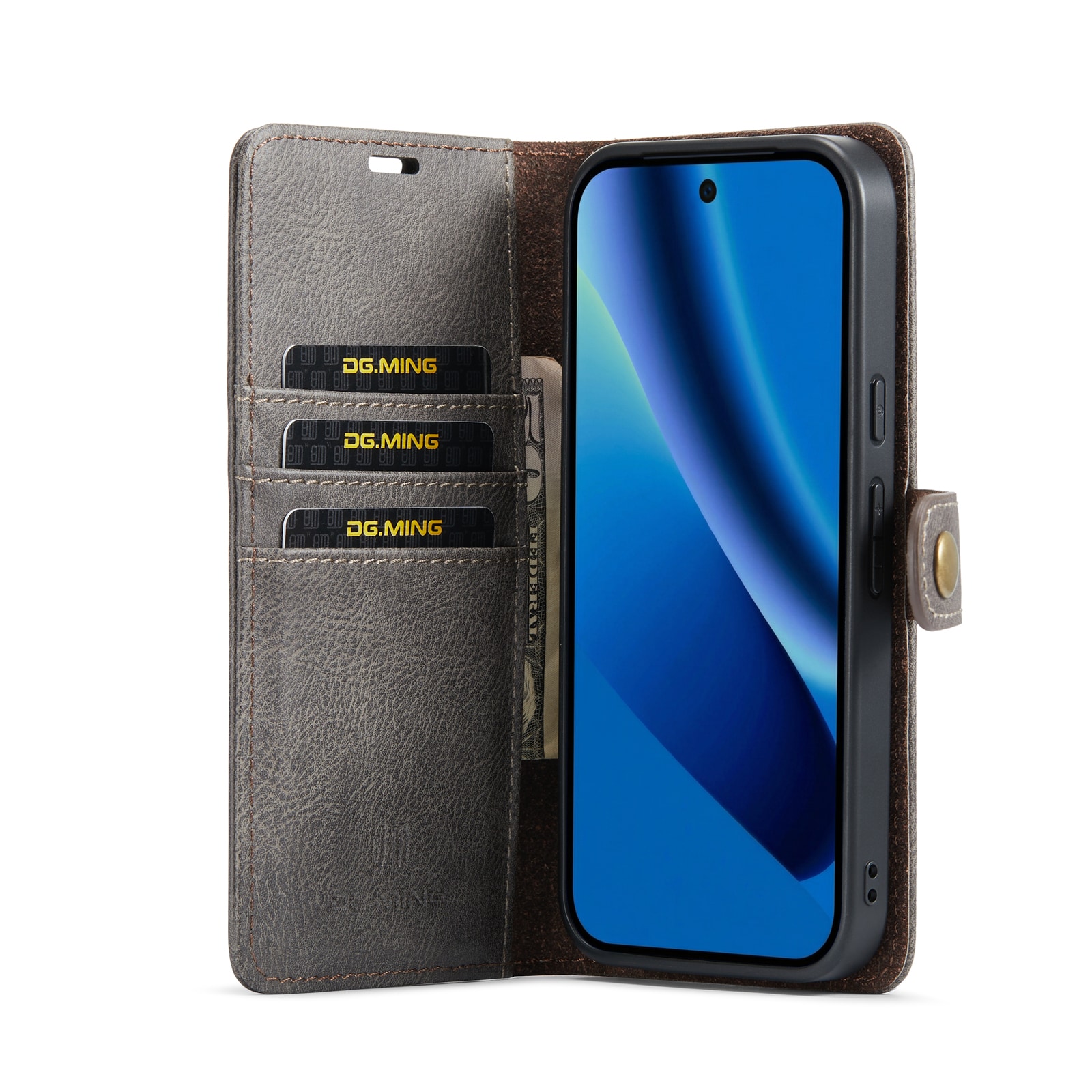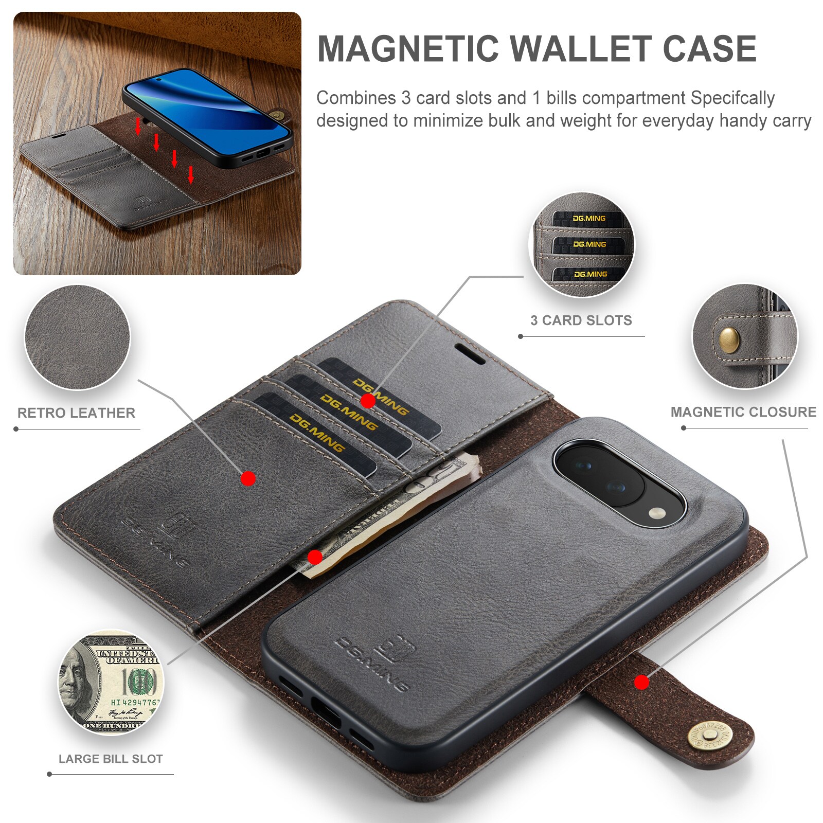 2-in-1-hoesje bestaande uit een bookcoverhoesje met daarin een afneembare magneet-backcase voor Google Pixel 10a van DG.MING. Het hoesje heeft een klassieke en stijlvolle uitstraling. Eenvoudig losnemen van je telefoon in het backcover hoesje om enkel je mobiel te gebruiken, bijvoorbeeld thuis of op werk.