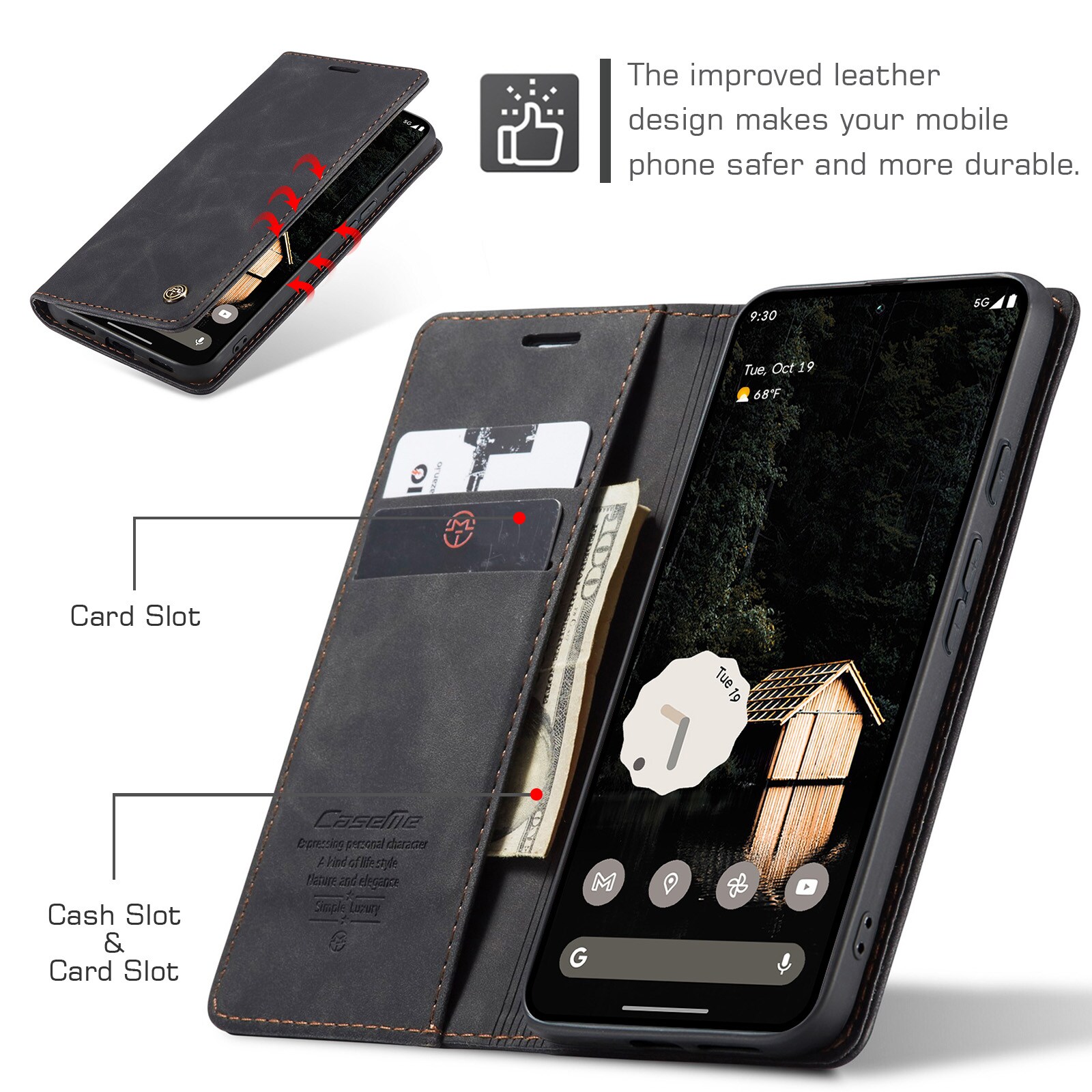 Slim Bookcover hoesje van CaseMe voor Google Pixel 10a.De hoes biedt volledige bescherming rondom je telefoon zonder in te leveren op stijl. De klep wordt gesloten met onzichtbare magneten, wat zorgt voor een slank ontwerp dat je telefoon niet log maakt.