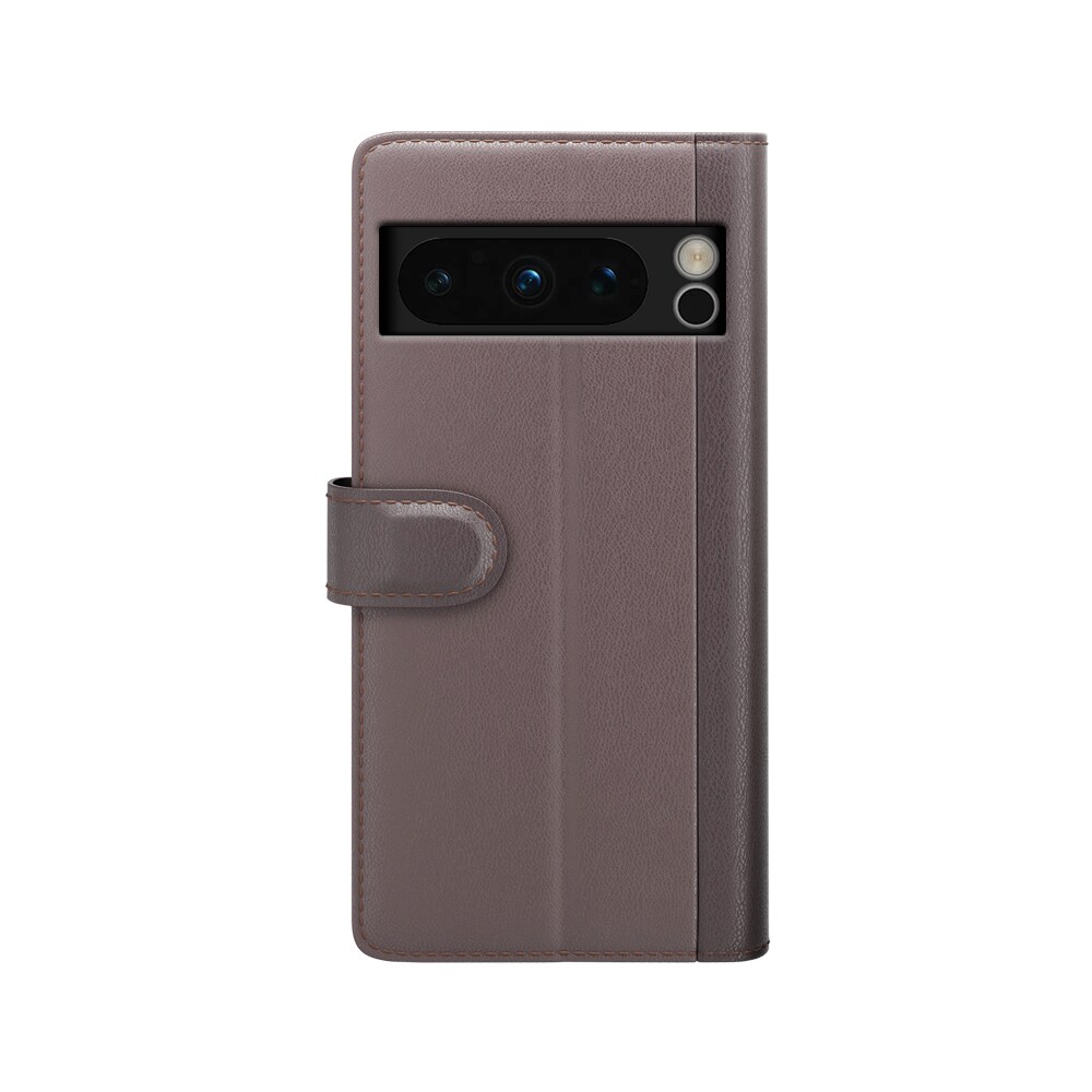 Bookcover hoesje van echt leer voor de Google Pixel 8 Pro Het hoesje beschermt je hele telefoon en heeft plek voor pasjes aan de binnenkant van de voorflap. De pasjeshouder heeft drie vakken en een groter vakje voor briefgeld of bonnetjes.