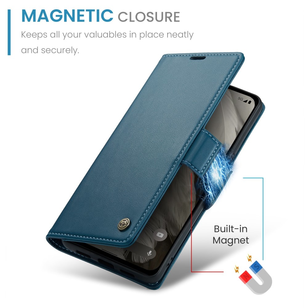 Slim Bookcover hoesje voor Google Pixel 8. Het hoesje biedt volledige bescherming voor je telefoon zonder dat het ten koste gaat van de stijl. De voorklep blijft gesloten met onzichtbare magneten, wat zorgt voor een slank ontwerp dat je telefoon niet lomp maakt. Dankzij de RFID-bescherming zijn je pasjes veilig opgeborgen in het hoesje.