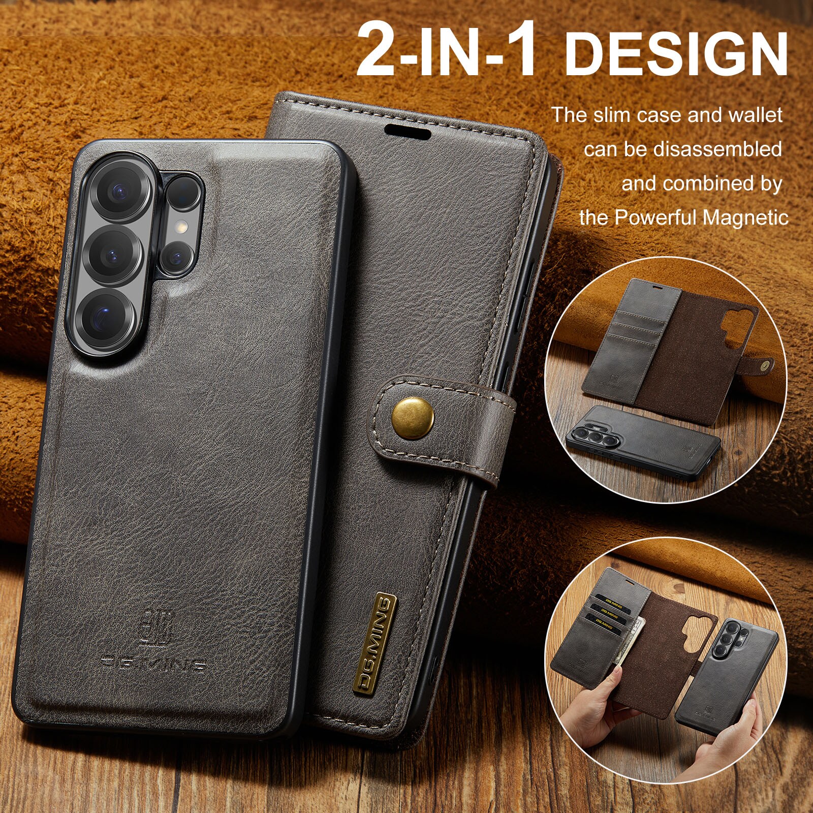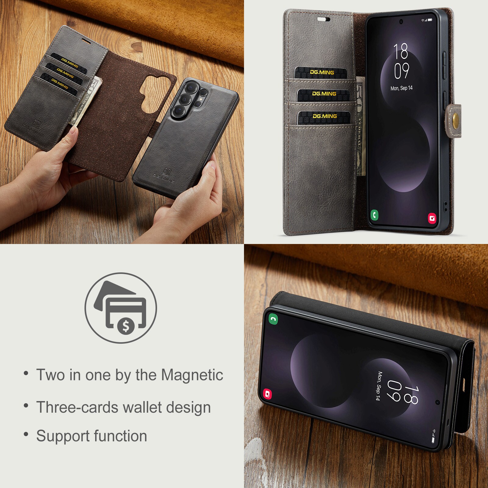 2-in-1-hoesje bestaande uit een bookcoverhoesje met daarin een afneembare magneet-backcase voor Samsung Galaxy S26 Ultra van DG.MING. Het hoesje heeft een klassieke en stijlvolle uitstraling. Eenvoudig losnemen van je telefoon in het backcover hoesje om enkel je mobiel te gebruiken, bijvoorbeeld thuis of op werk.