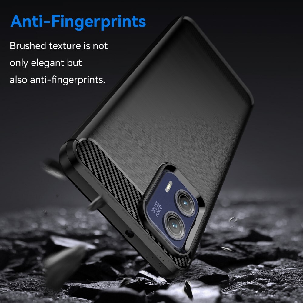 Flexibel hoesje gemaakt van schokbestendig TPU voor Motorola Moto G73 van techTech. Het hoesje heeft een modern ontwerp met brushed achterkant en carbon details. De hoeken van het hoesje hebben ingebouwde luchtzakjes voor extra demping bij een val of stoot.