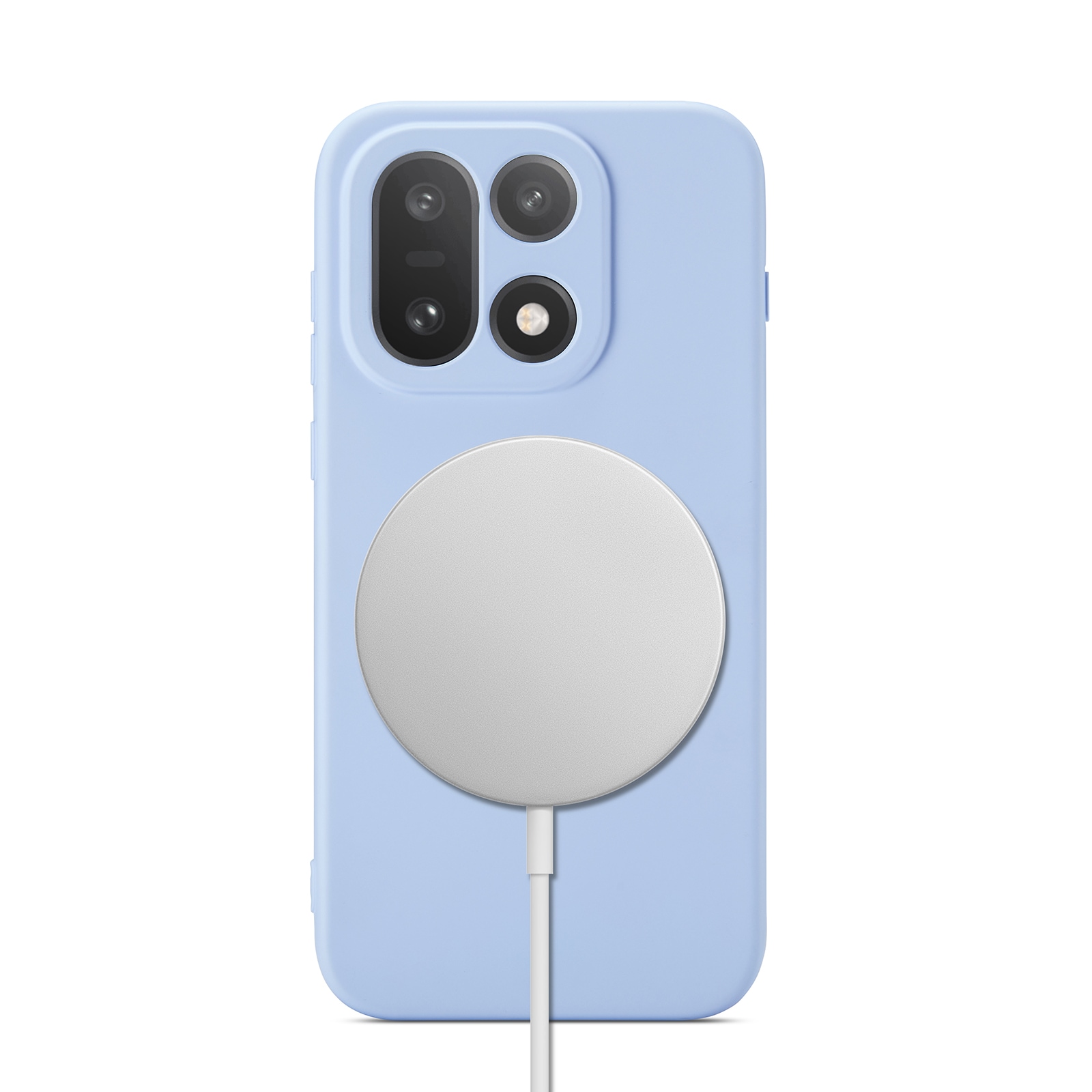 De hoes heeft een magnetische ring aan de binnenkant en is compatibel met MagSafe-accessoires zoals opladers en kaarthouders.