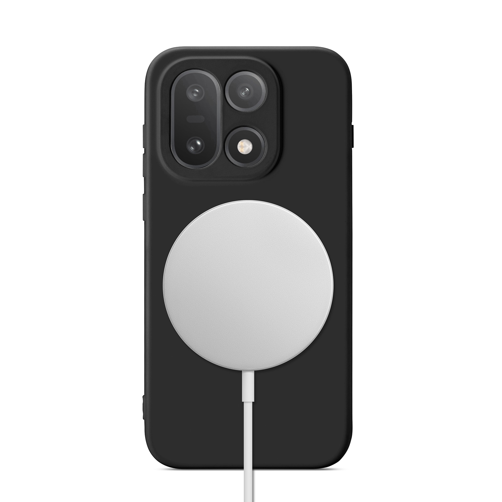 De hoes heeft een magnetische ring aan de binnenkant en is compatibel met MagSafe-accessoires zoals opladers en kaarthouders.