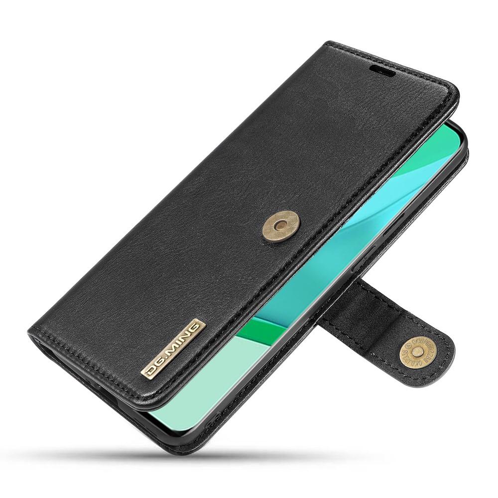 2-in-1-hoesje bestaande uit een bookcoverhoesje met daarin een afneembare magneet-backcase voor OnePlus 9 Pro van DG.MING. Het hoesje heeft een klassieke en stijlvolle uitstraling. Eenvoudig losnemen van je telefoon in het backcover hoesje om enkel je mobiel te gebruiken, bijvoorbeeld thuis of op werk.