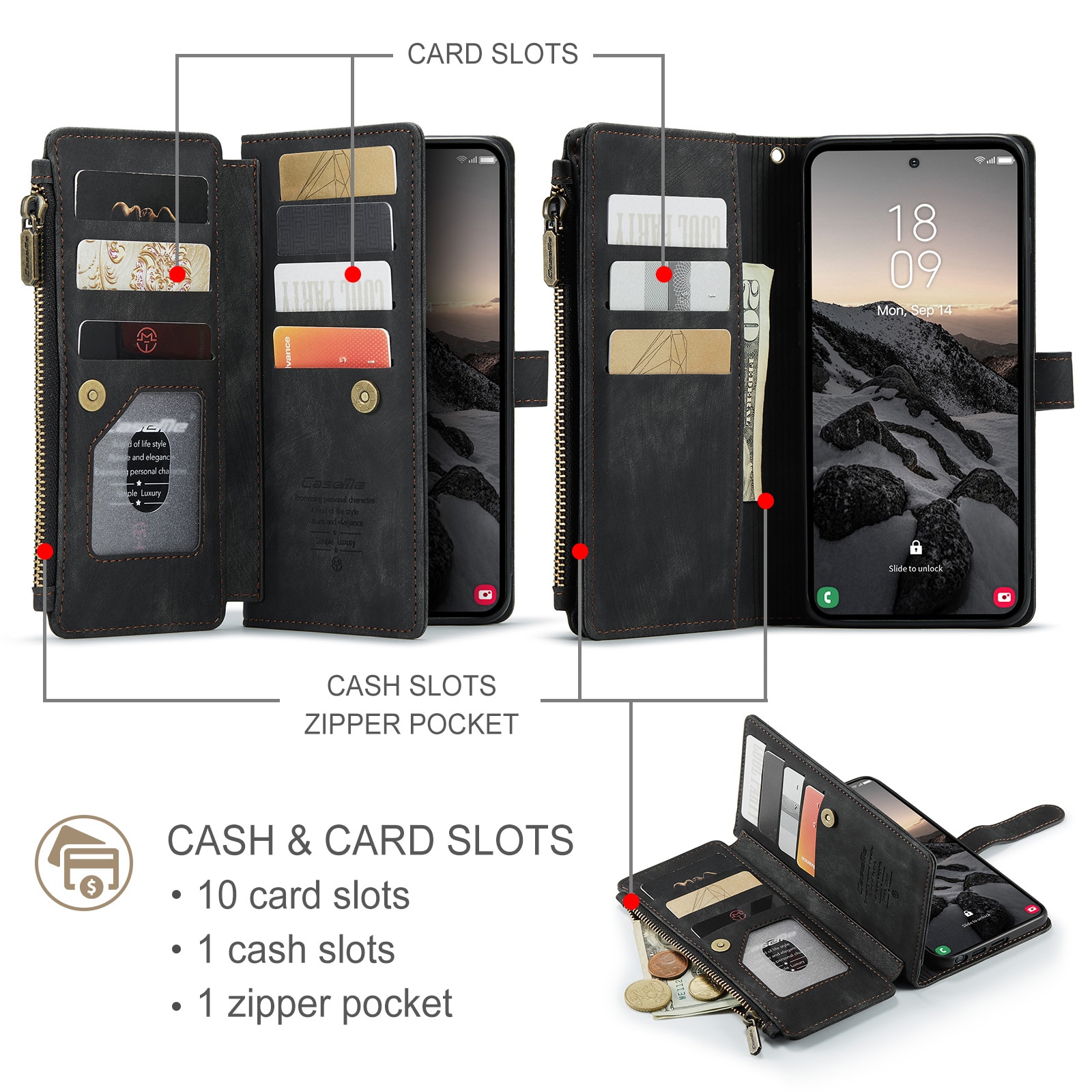 Bookcover hoesje voor Samsung Galaxy S26 Ultra van CaseMe. De portemonnee beschikt over 7 kaarthouders, een vak voor briefgeld en een ruim muntvak met ritssluiting.