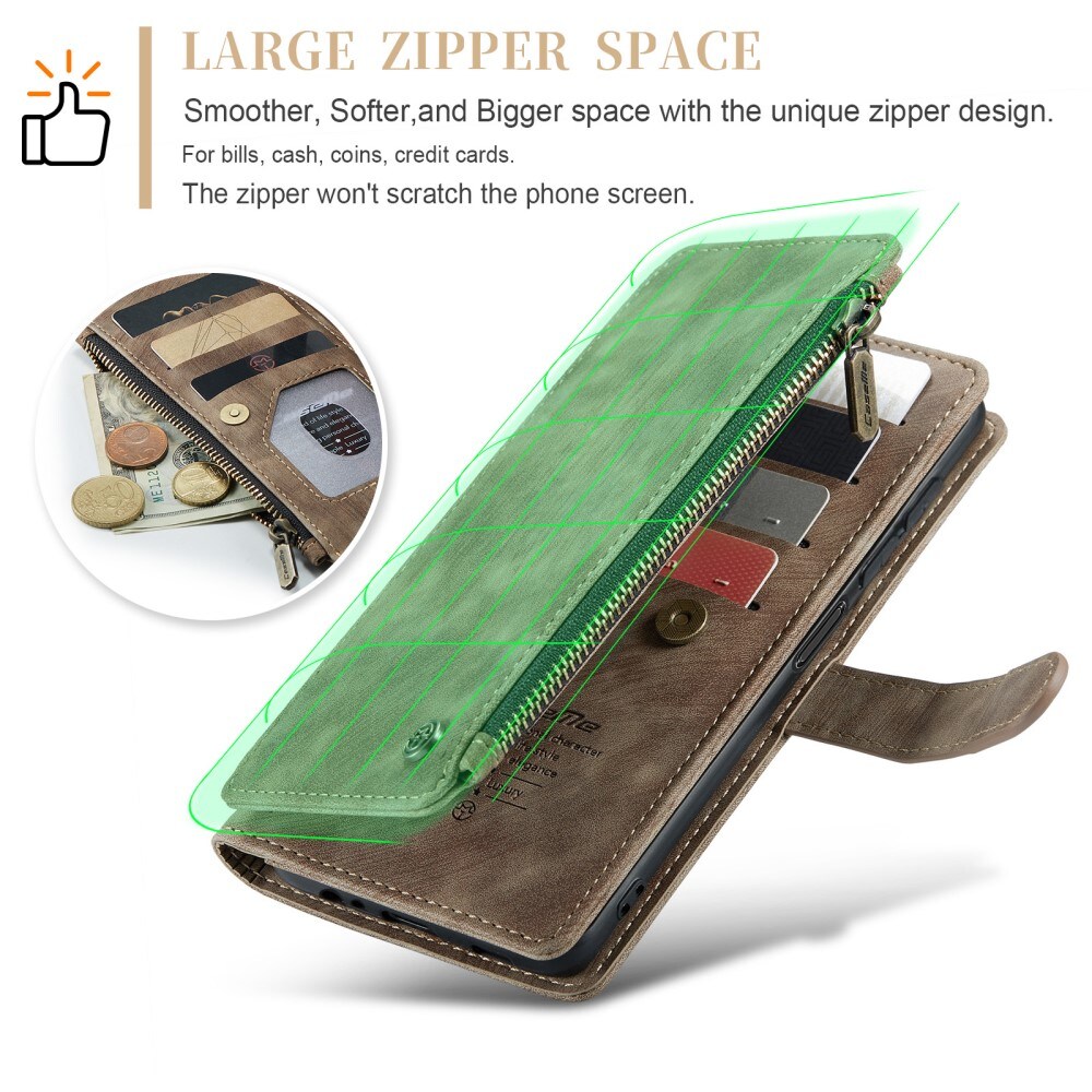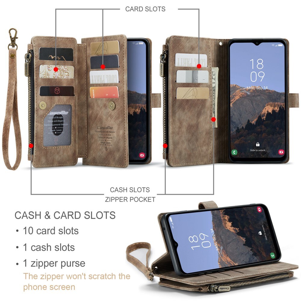 Bookcover hoesje voor Samsung Galaxy A14 van CaseMe. De portemonnee beschikt over 7 kaarthouders, een vak voor briefgeld en een ruim muntvak met ritssluiting.