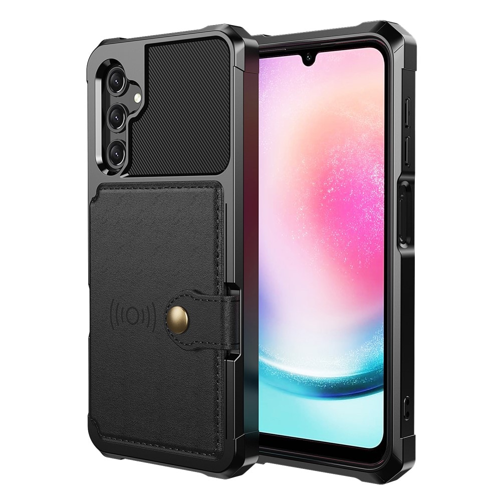 Schokabsorberend backcase hoesje voor de Samsung Galaxy A15 met ingebouwde portemonnee aan de achterkant. Het hoesje heeft een modern design en verstevigde hoeken voor de beste bescherming.