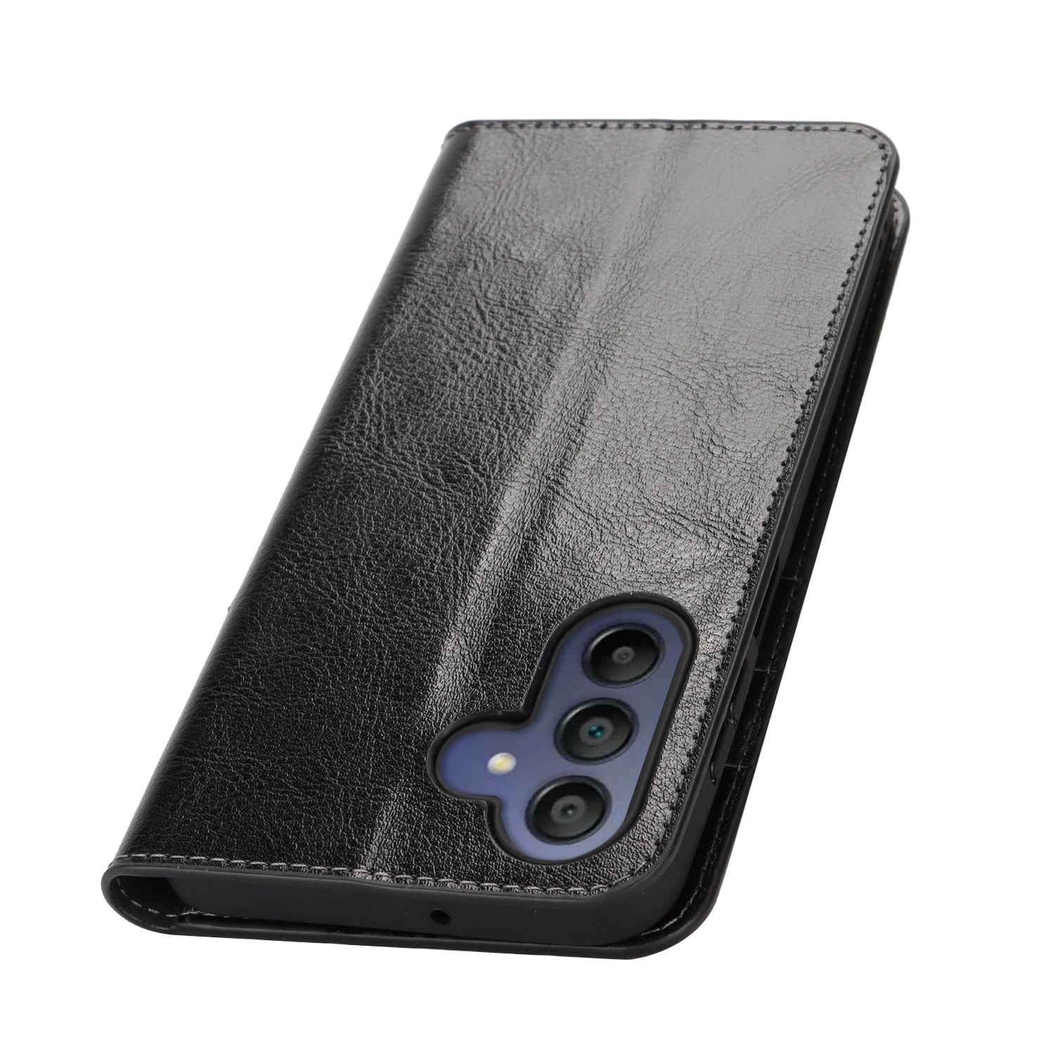 Bescherm je Samsung Galaxy A17 met een hoesje van echt leer. Ondanks het dunne en slimme design heeft het hoesje drie vakjes voor pasjes en één vakje voor briefgeld aan de binnenkant van de voorflap. Je telefoon zit veilig in de flexibele houder binnenin het hoesje.