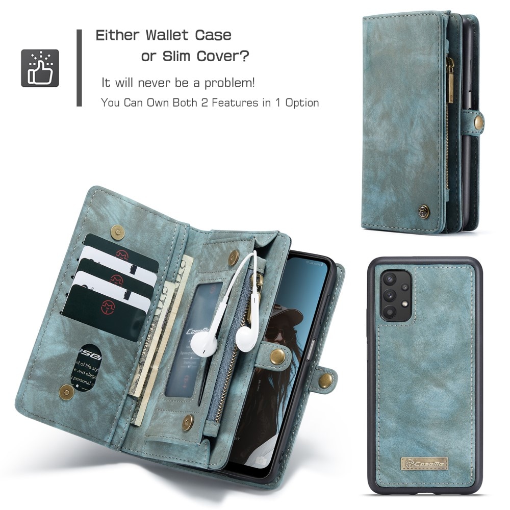 Telefoonhoesje met magnetische case en portemonnee met extra veel kaartsleuven voor Samsung Galaxy A32 5G van CaseMe. De ruime portemonnee heeft een vak voor bankbiljetten, een muntvak met ritssluiting en meerdere kaartsleuven.