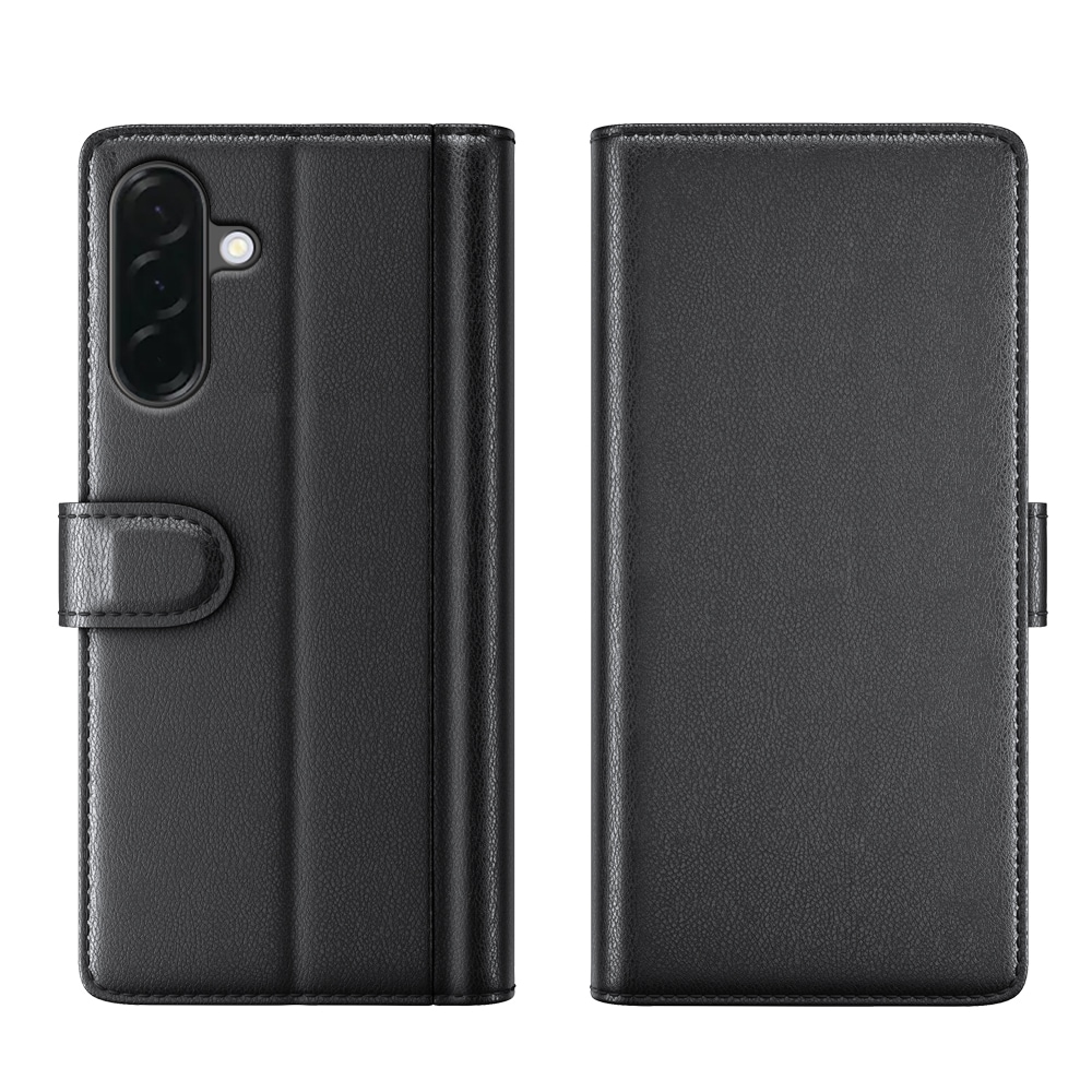 Bookcover hoesje van echt leer voor de Samsung Galaxy A37 Het hoesje beschermt je hele telefoon en heeft plek voor pasjes aan de binnenkant van de voorflap. De pasjeshouder heeft drie vakken en een groter vakje voor briefgeld of bonnetjes.